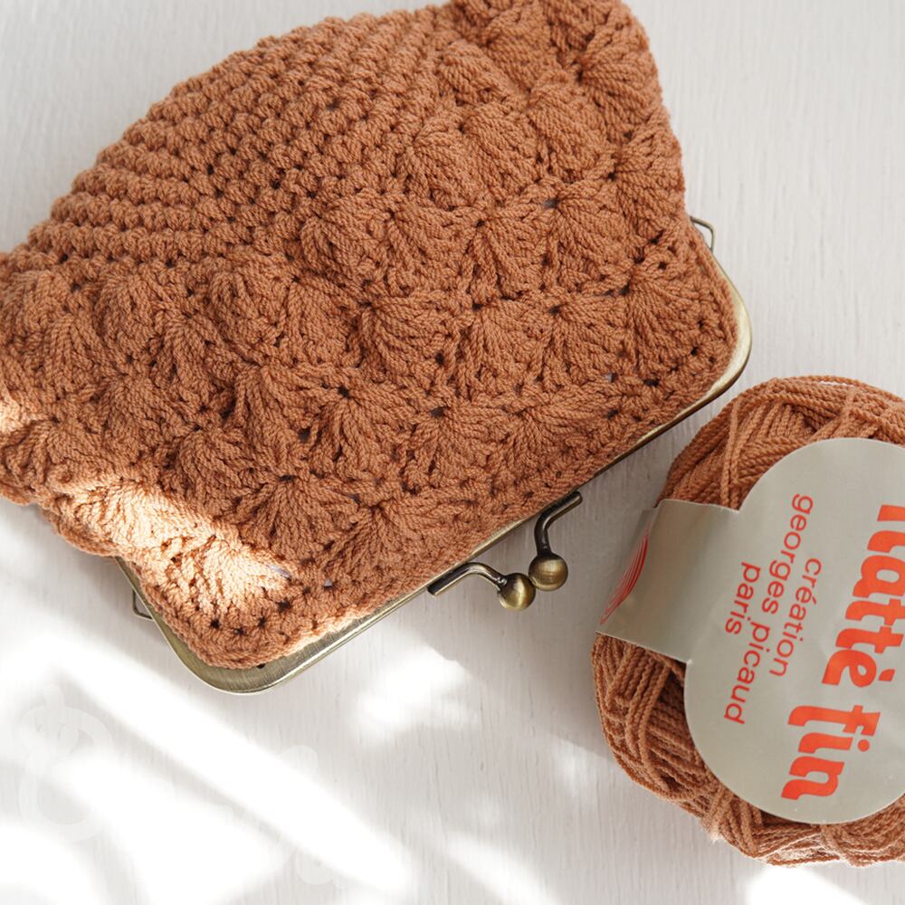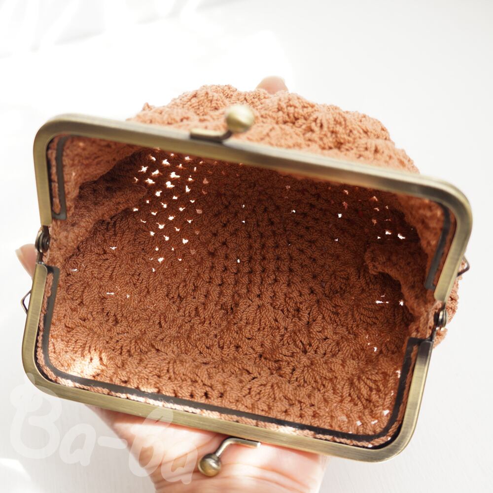 フランス製サマーウールを松編みでふんわりと編み上げ、シンプルな口金を合わせました。