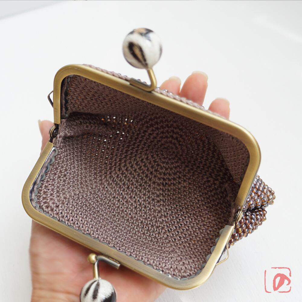 3mmのガラスビーズをひとつぶづつ、全面に編み込みました。