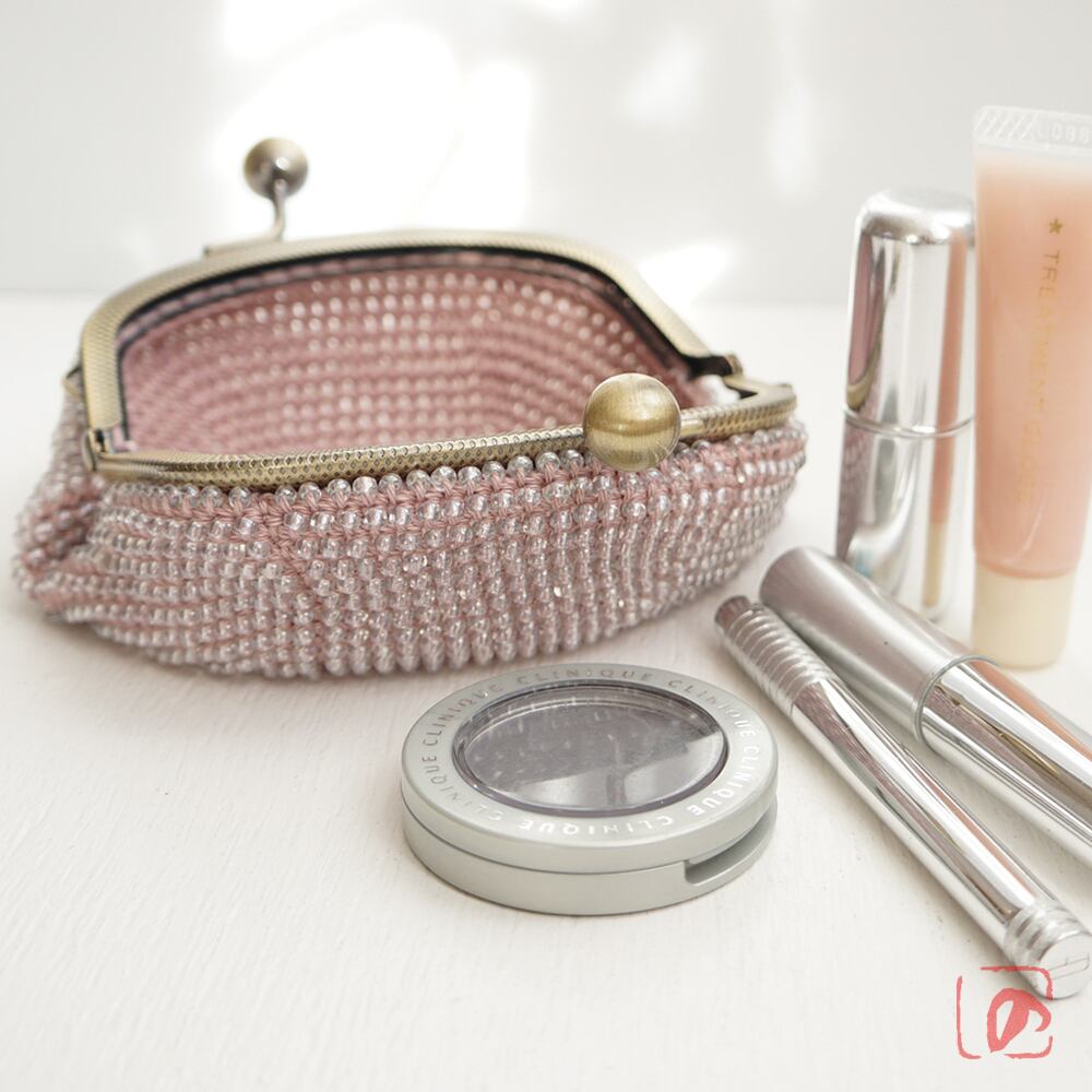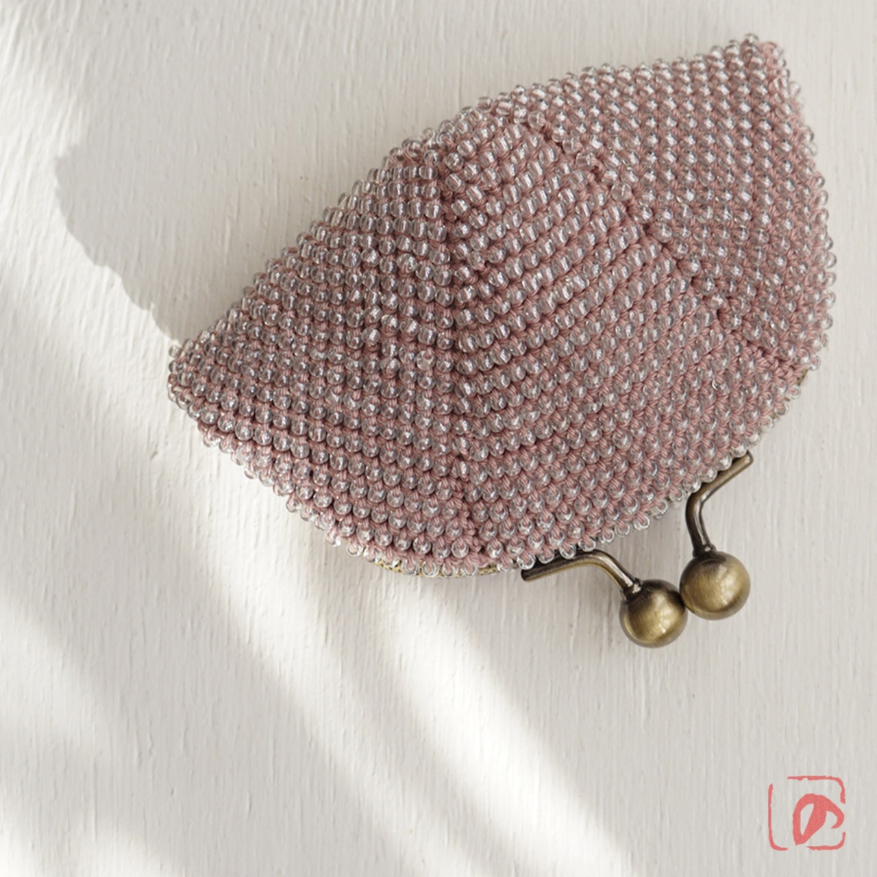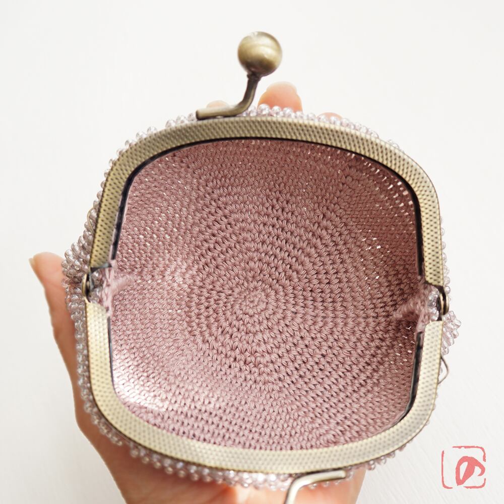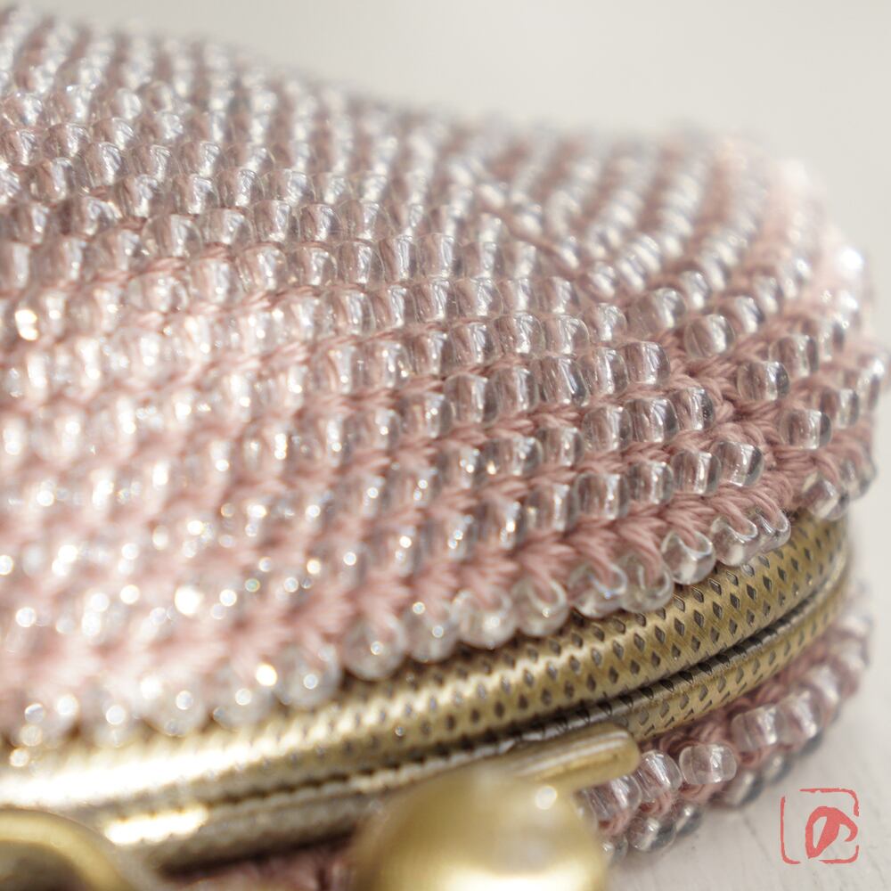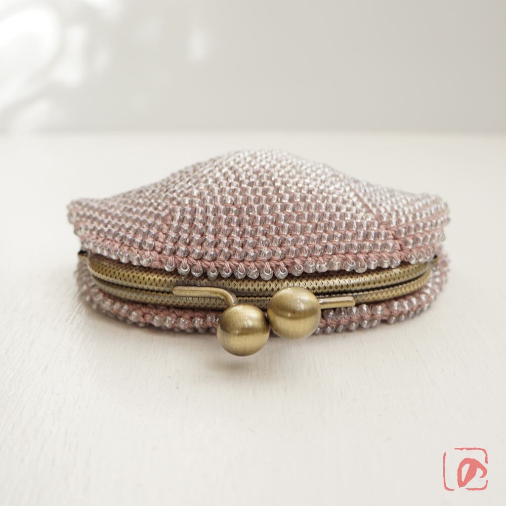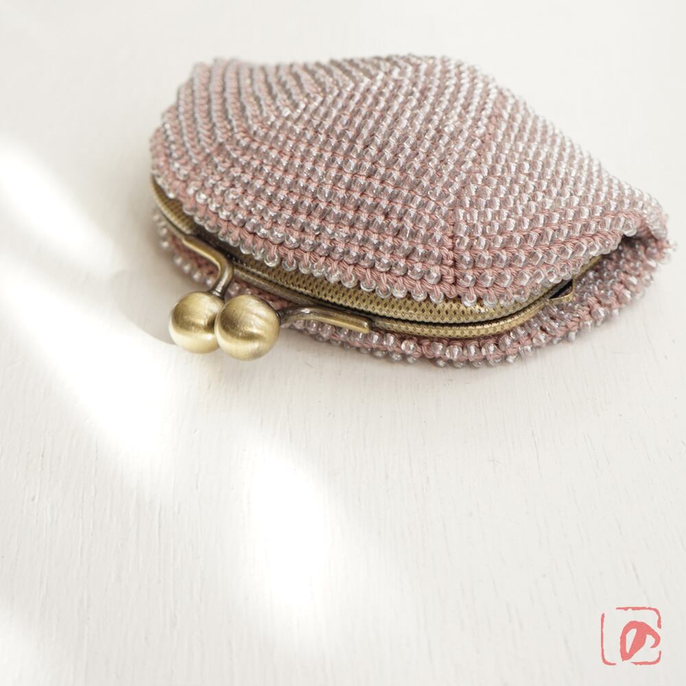 ばあば作、ガラスビーズの大きめがま口(smoky rose・1837)