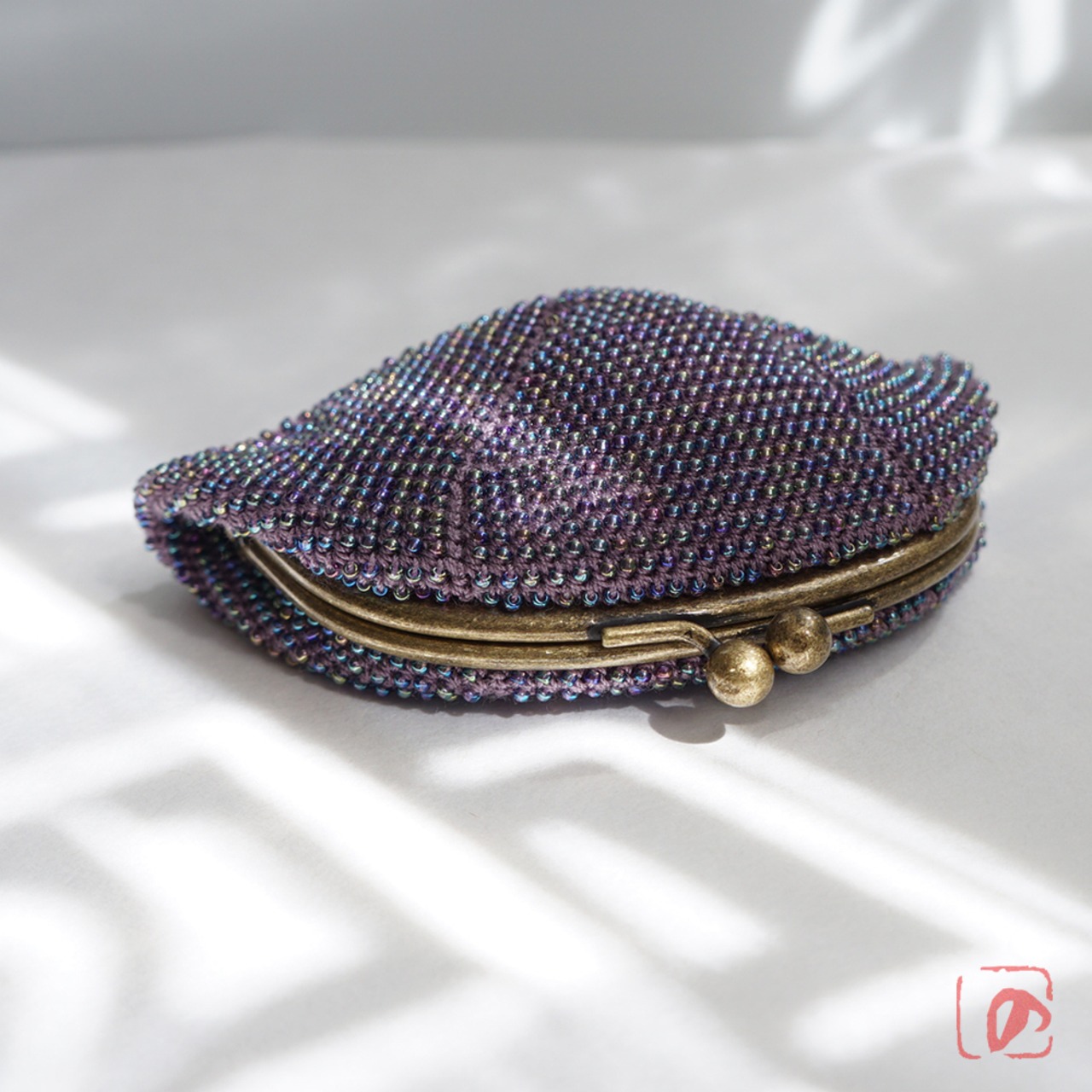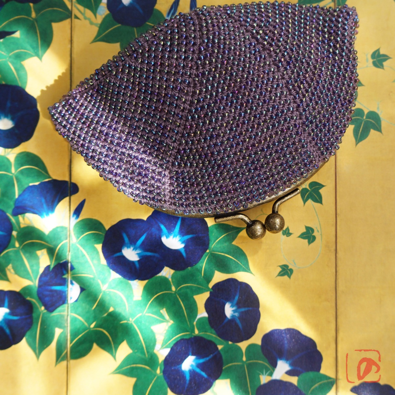 ばあば作 ❖ シードビーズの大きめ格別ながま口(暁紫・1890)