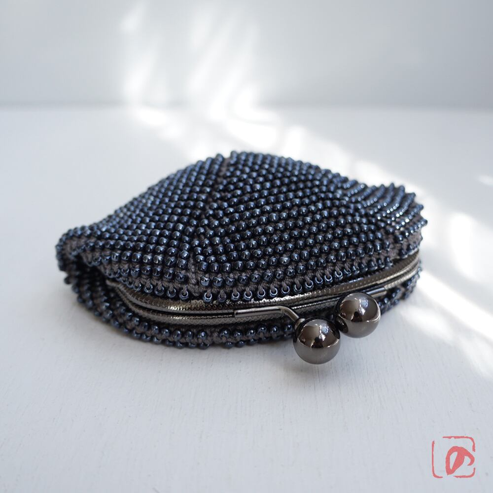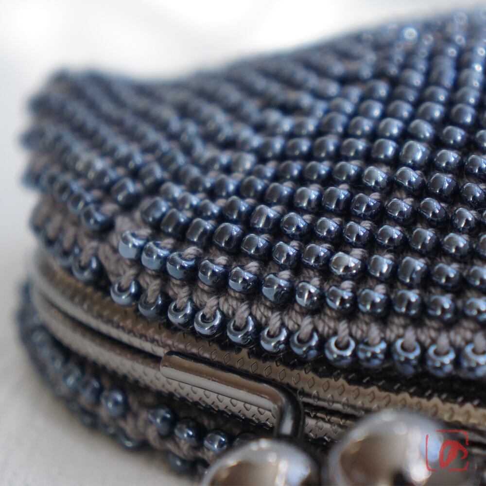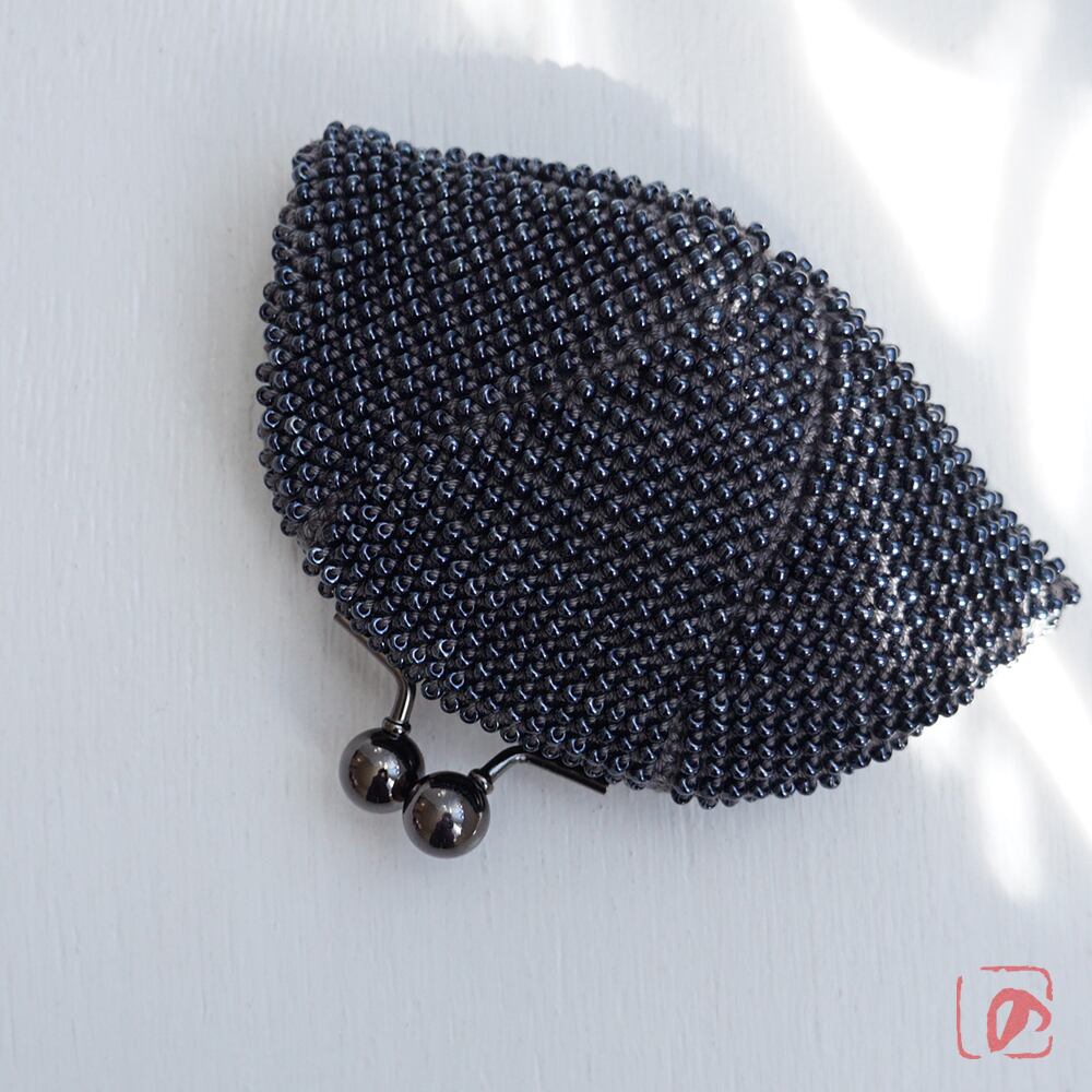 3mmのガラスビーズをひとつぶづつ全面に編み込んだ、上質ながま口です。