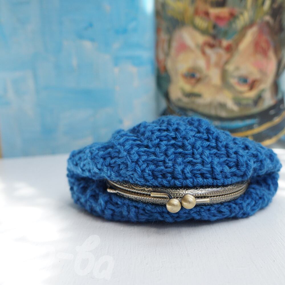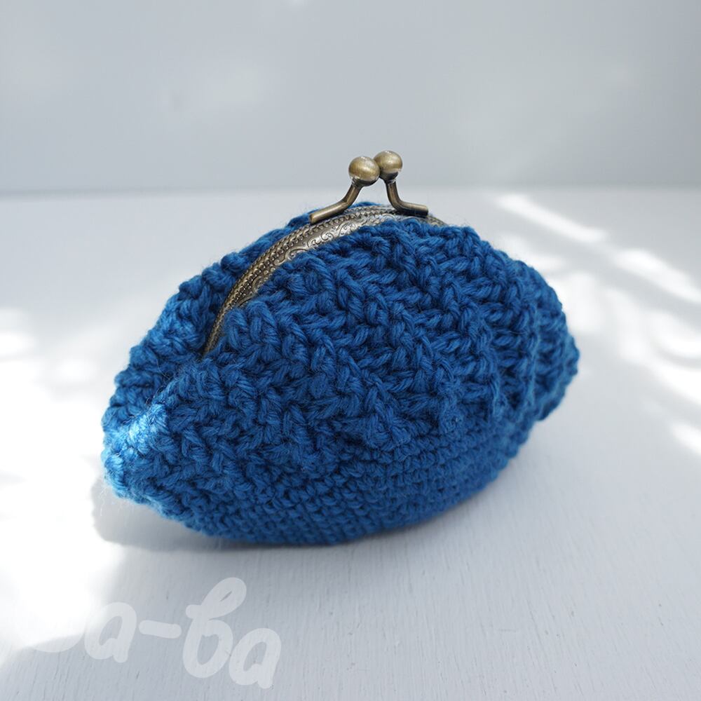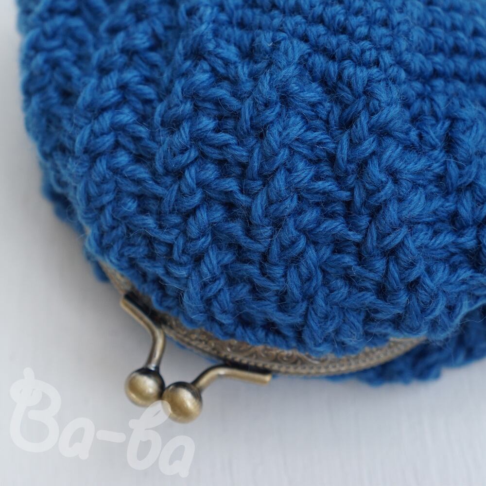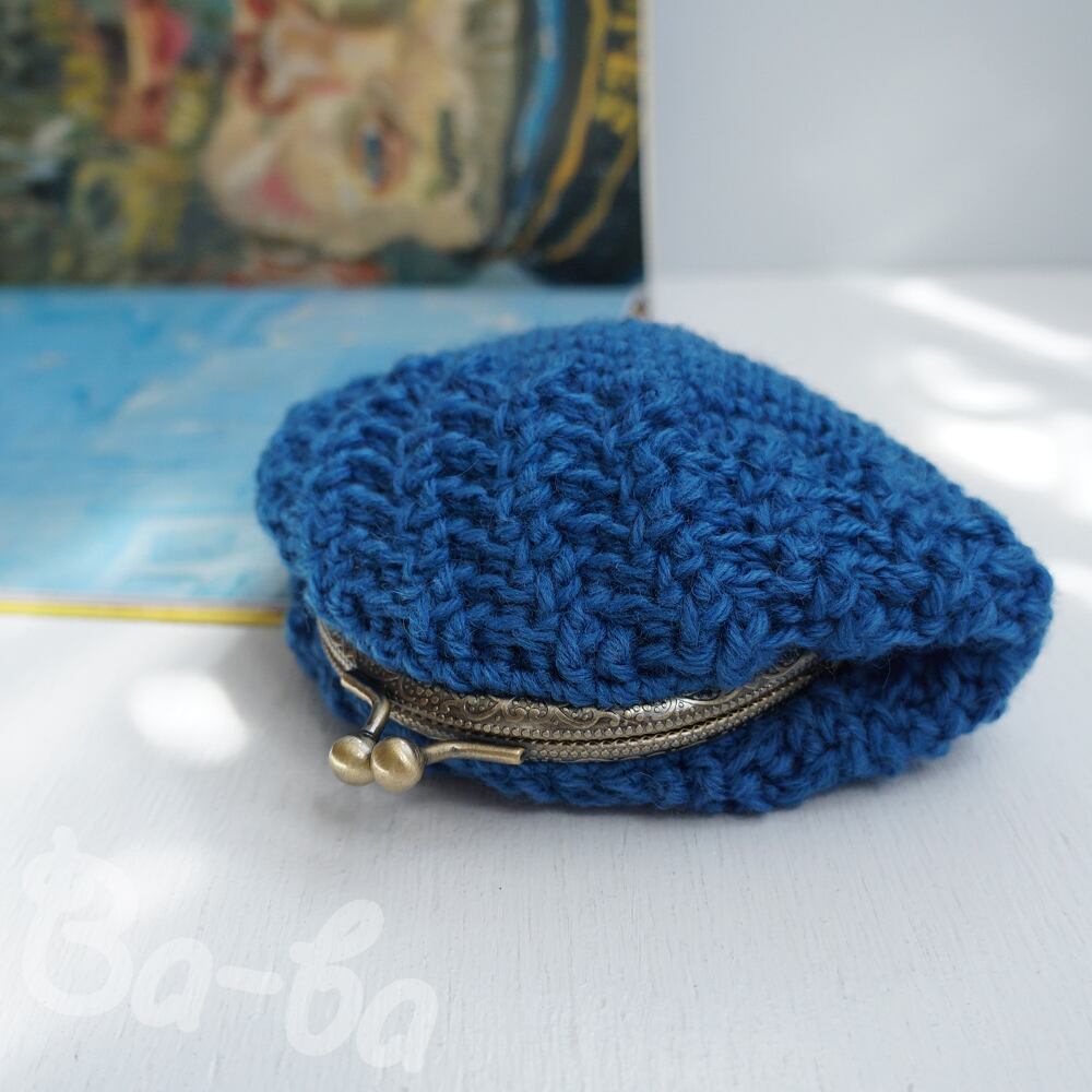シンプルな形だけど模様編みが効いた編みがま口です。