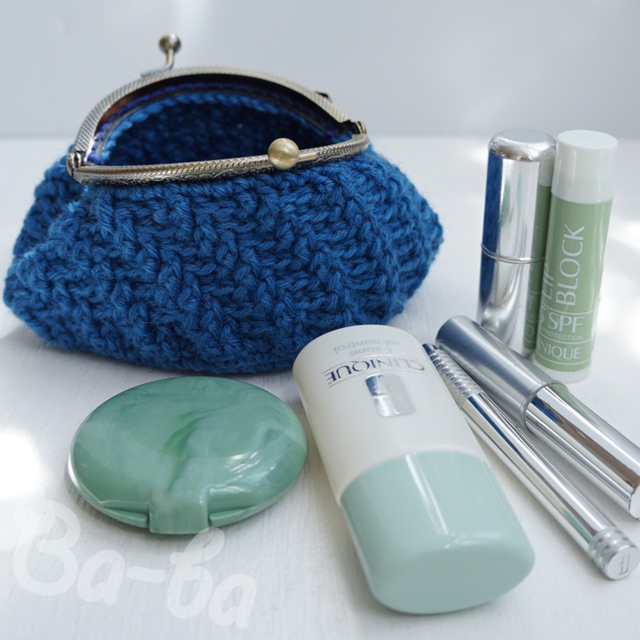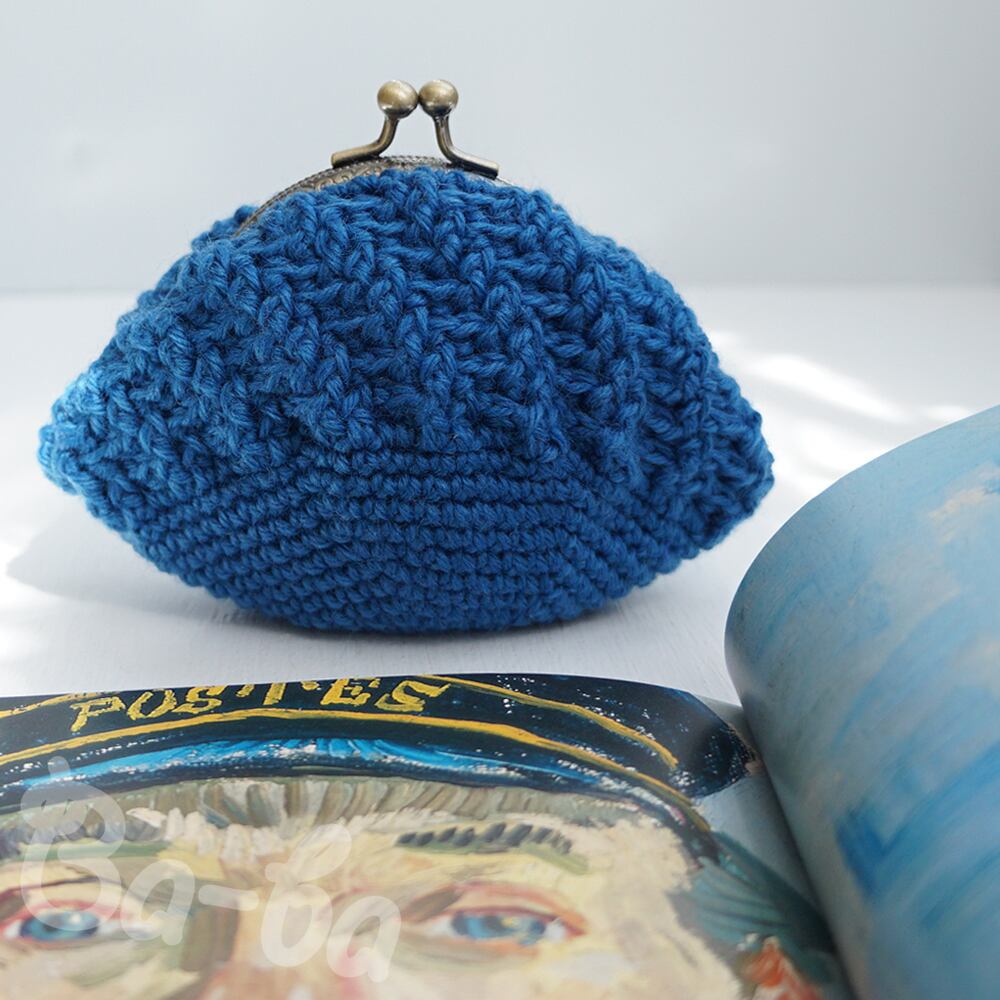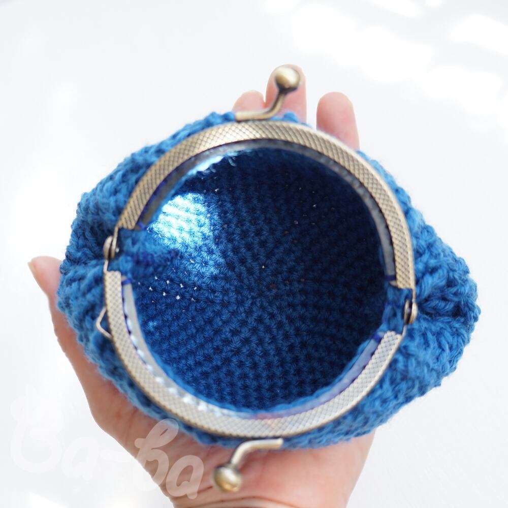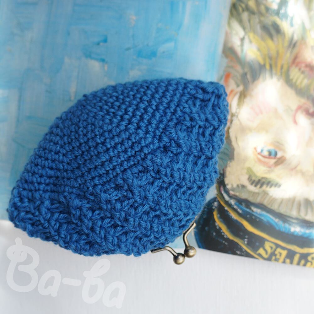 シンプルな形だけど模様編みが効いた編みがま口です。