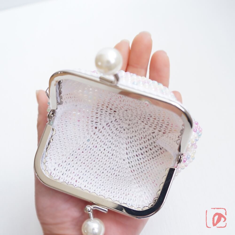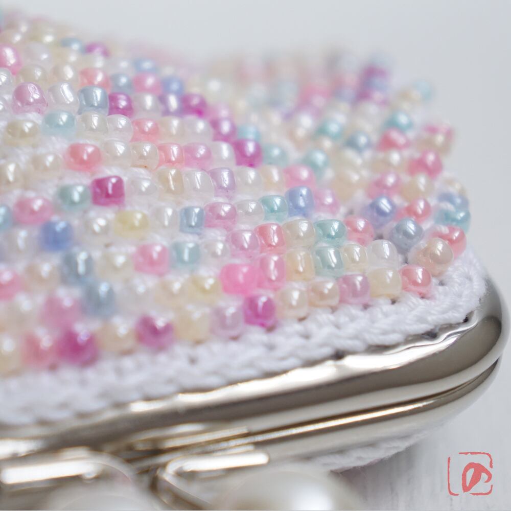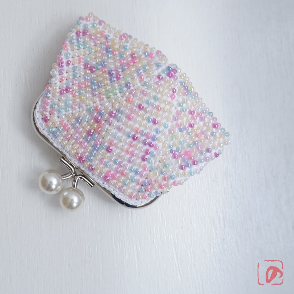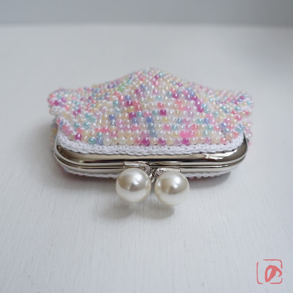 ばあば作☆総ガラスビーズのスクエアがま口(couleur pâle・1914)