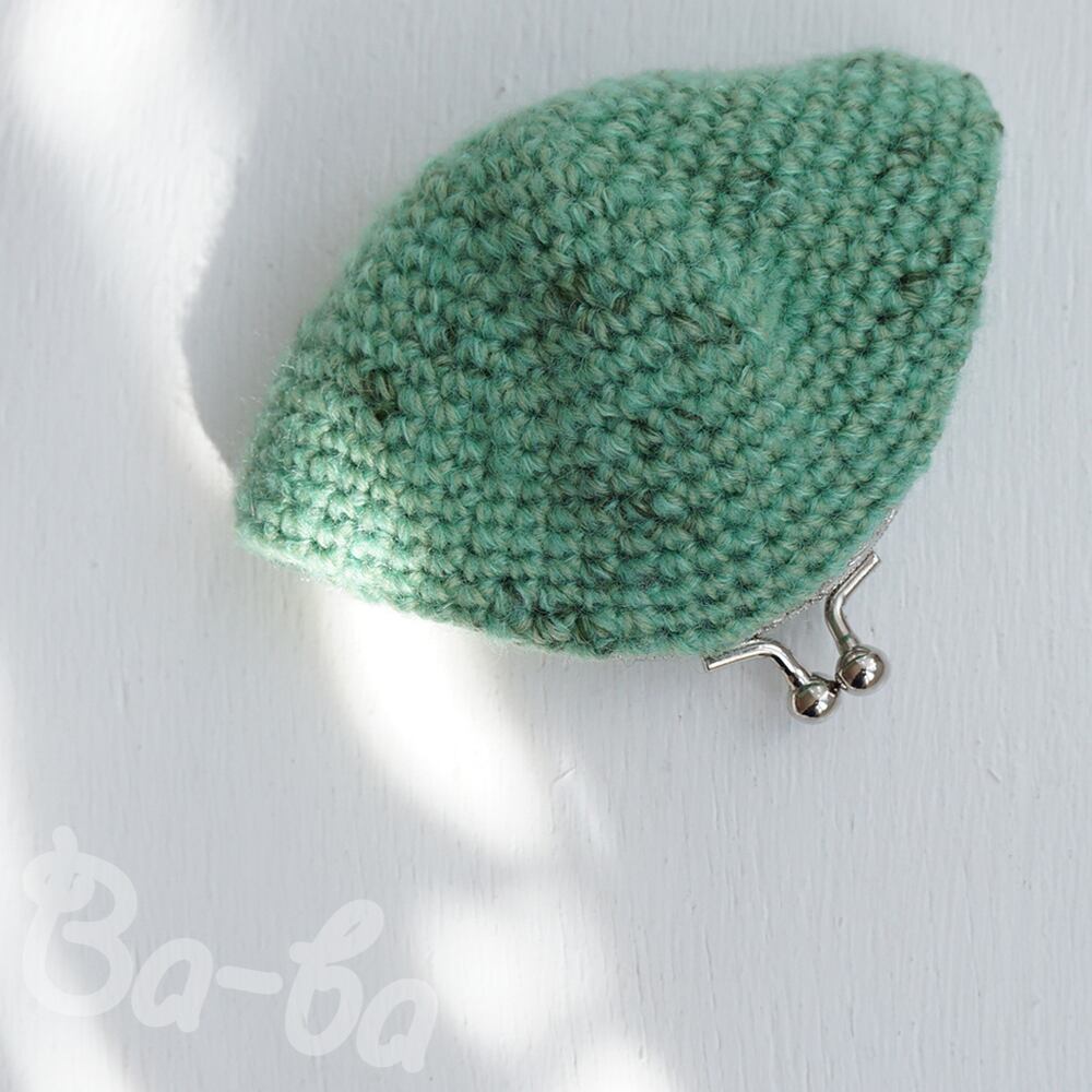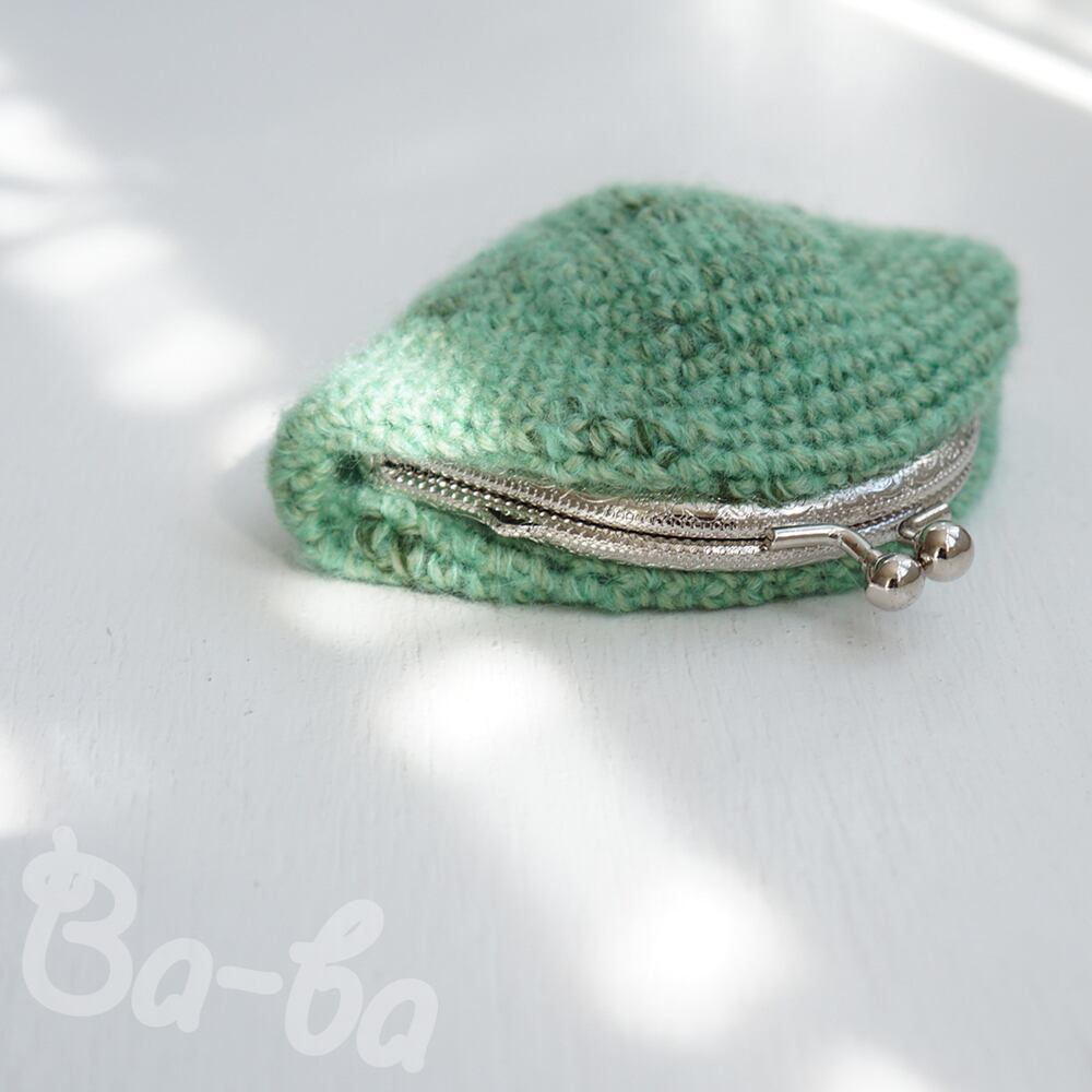 最後まで大事に使いたい、残り糸の編みがま口です。