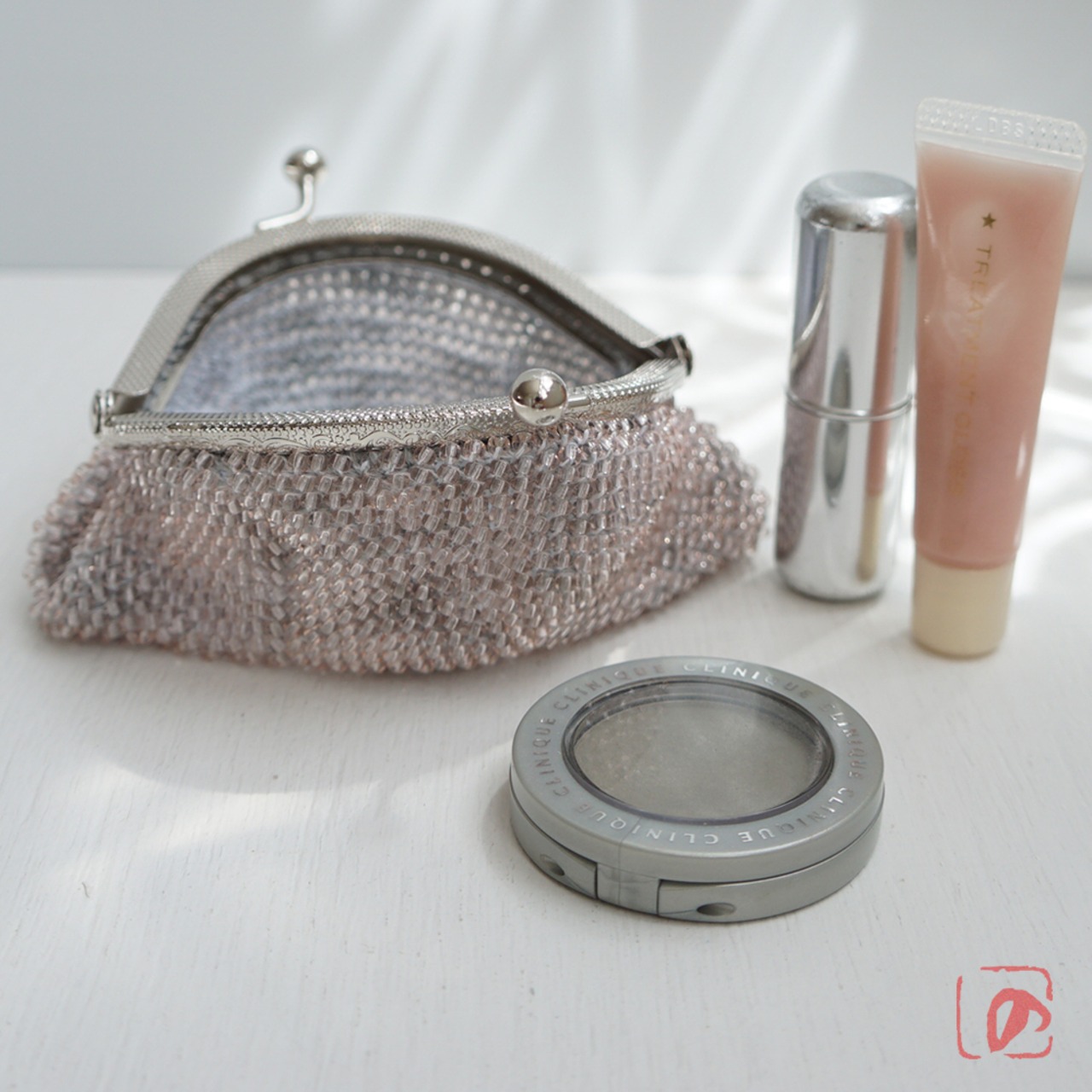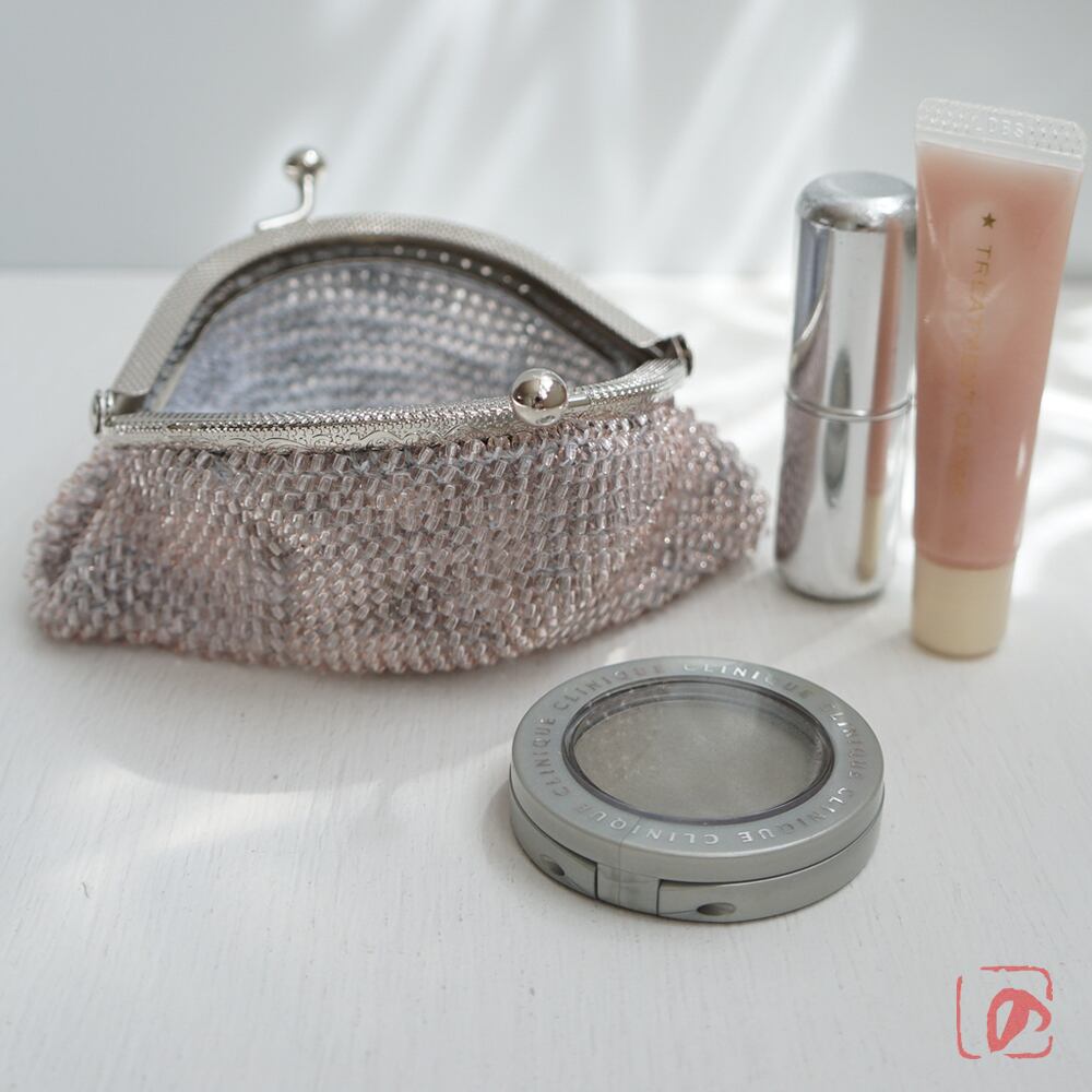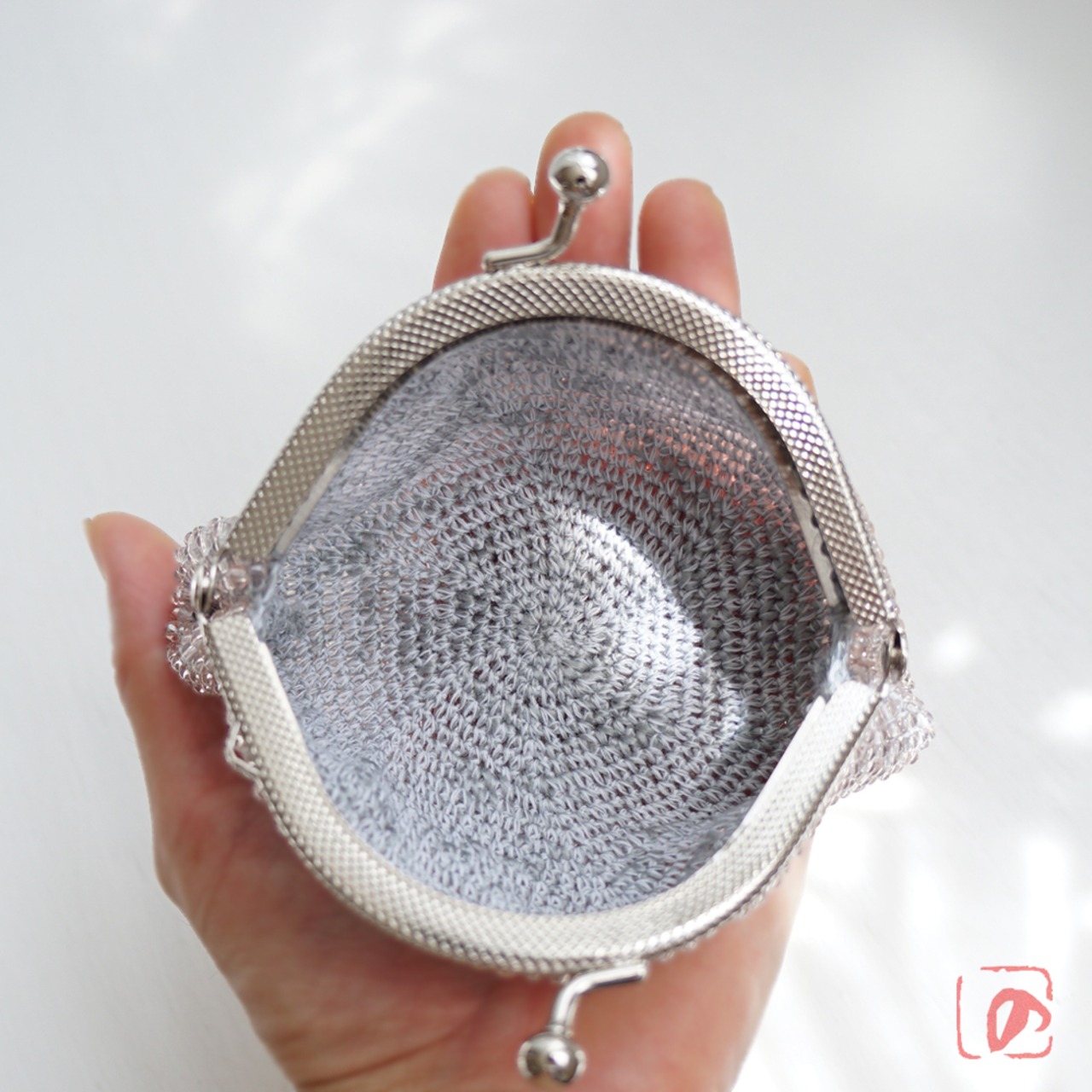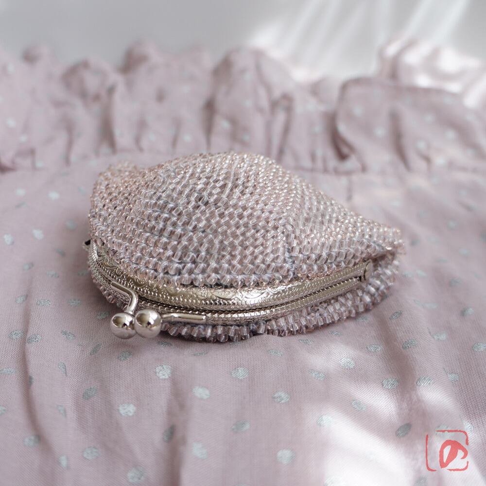 ばあば作 ✧ シードビーズのがま口(灰桃・1955)