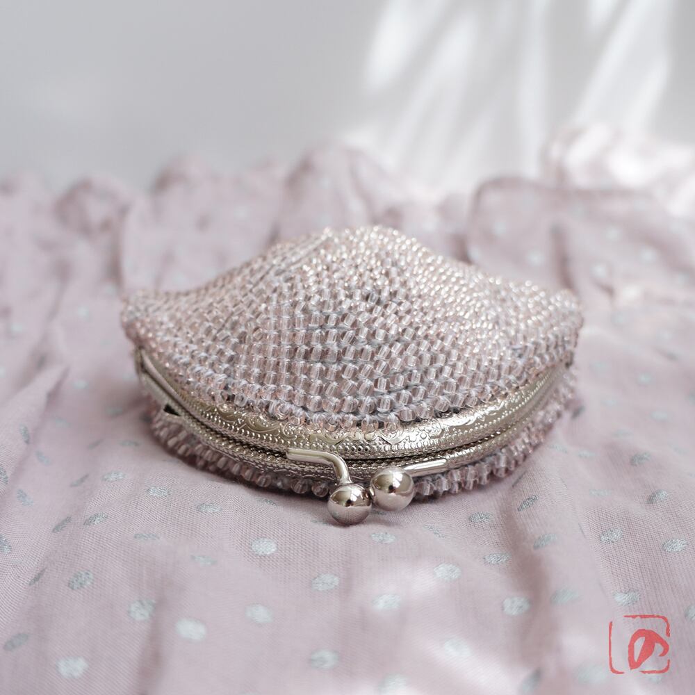 日本製のシードビーズをひとつぶづつ全面に編み込んだ上質ながま口です。