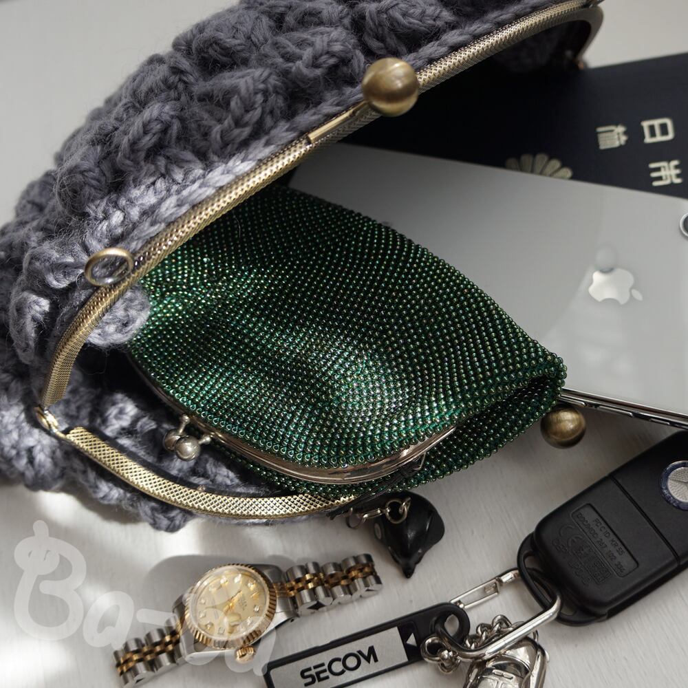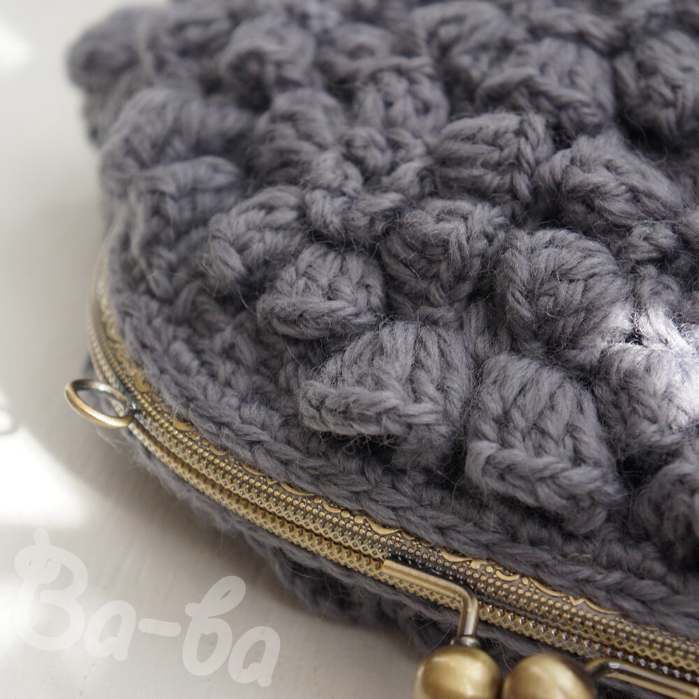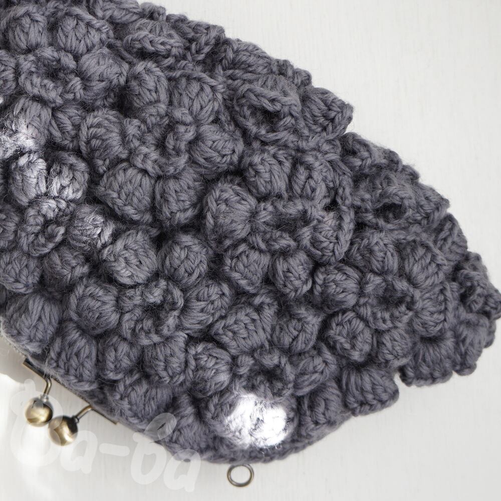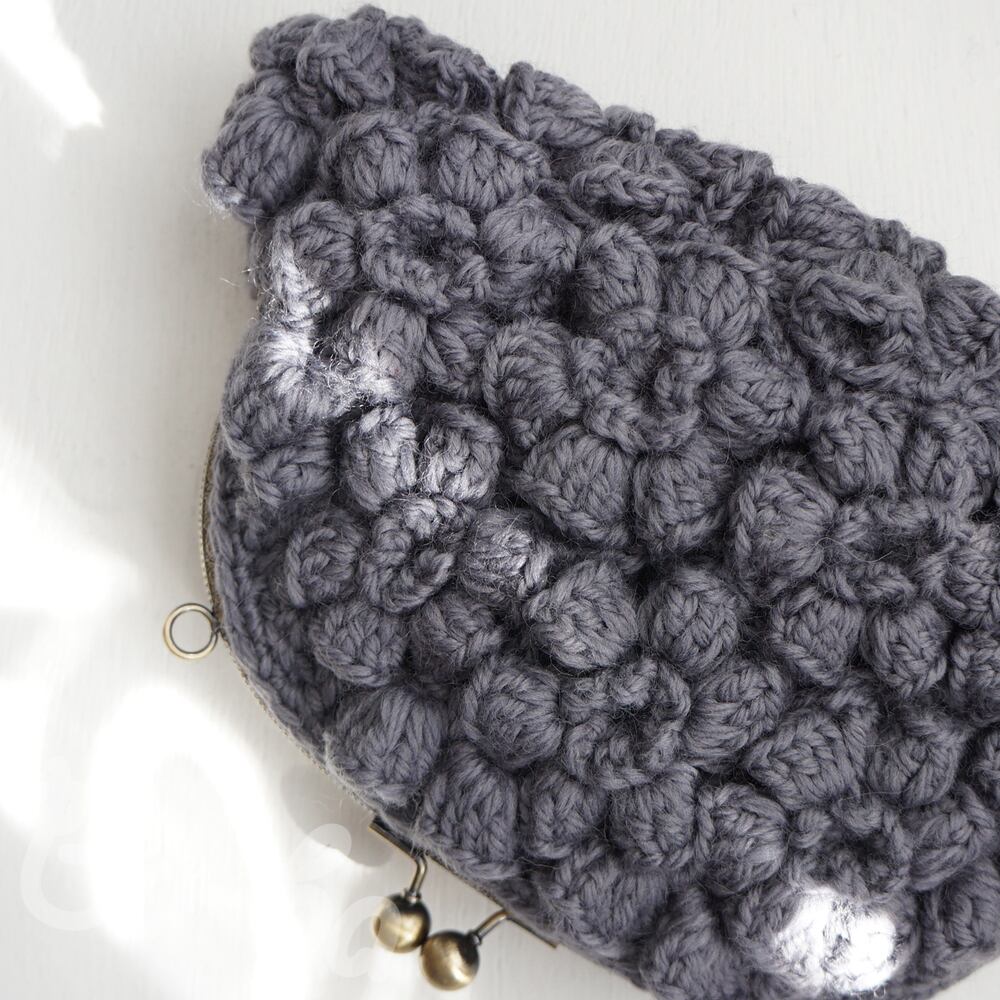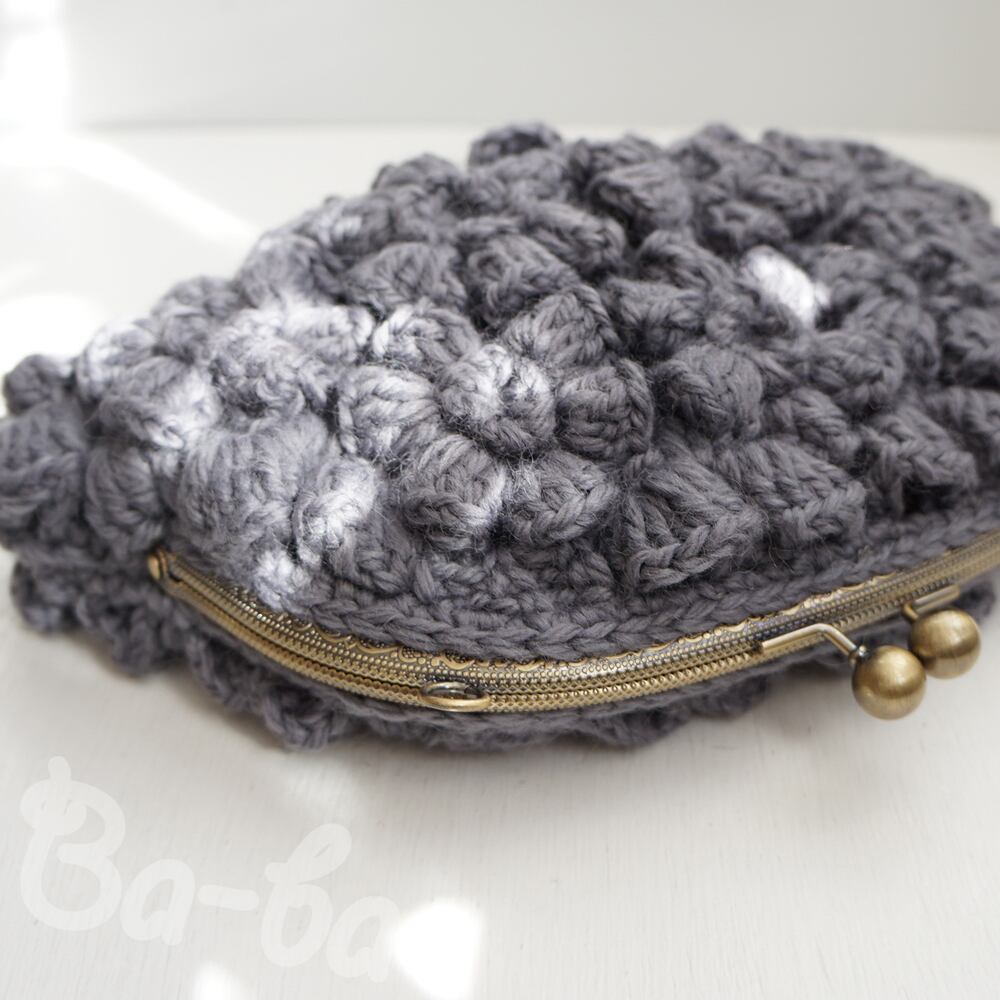 ばあば作、ポピーパフ編みのがま口バッグ(Mysa・C1704)