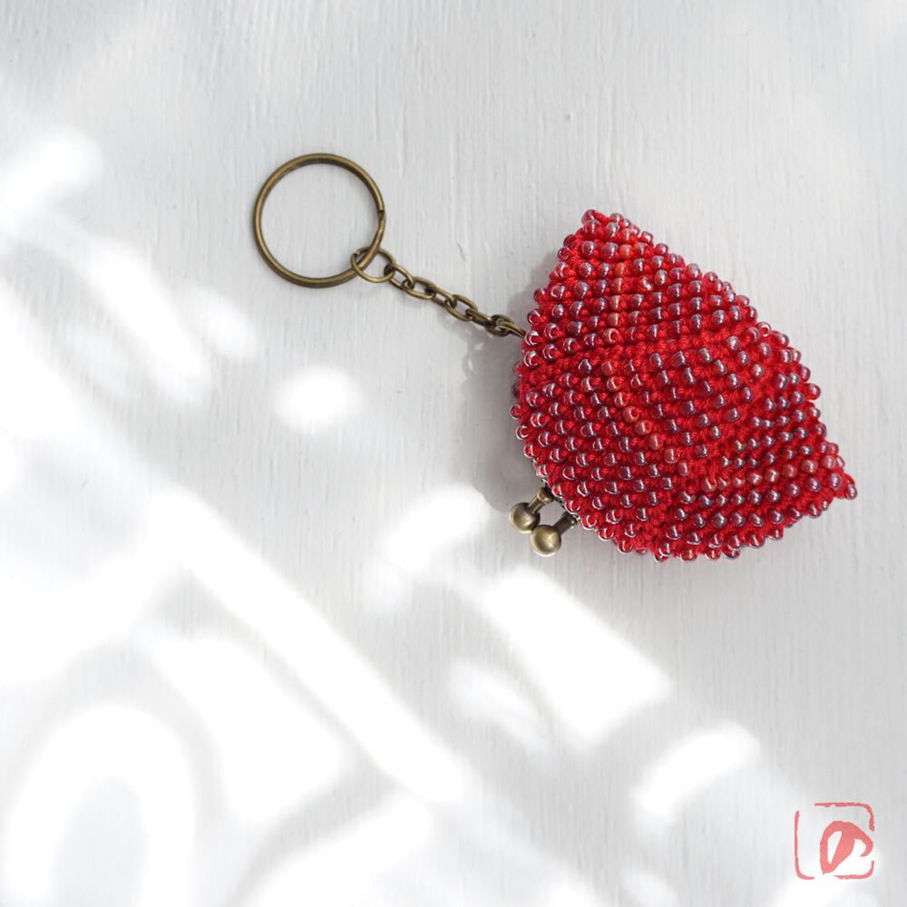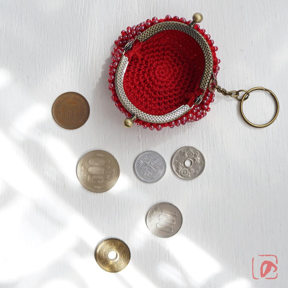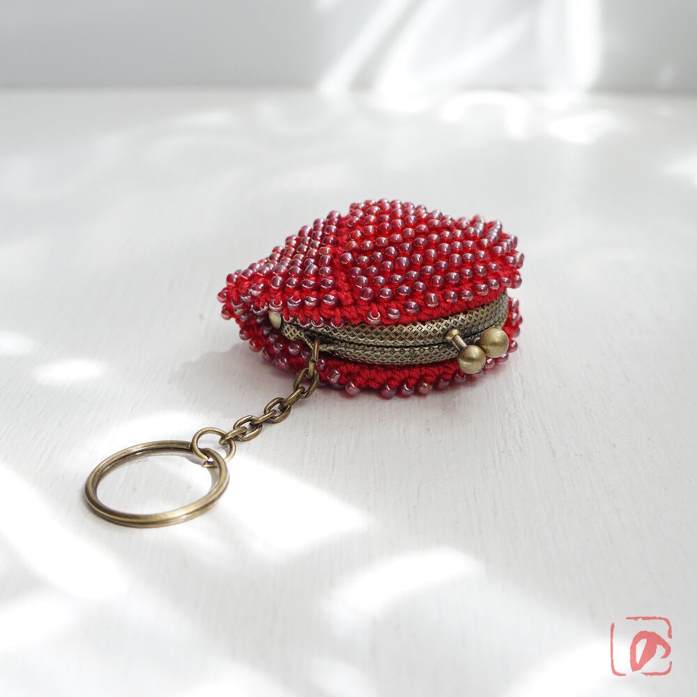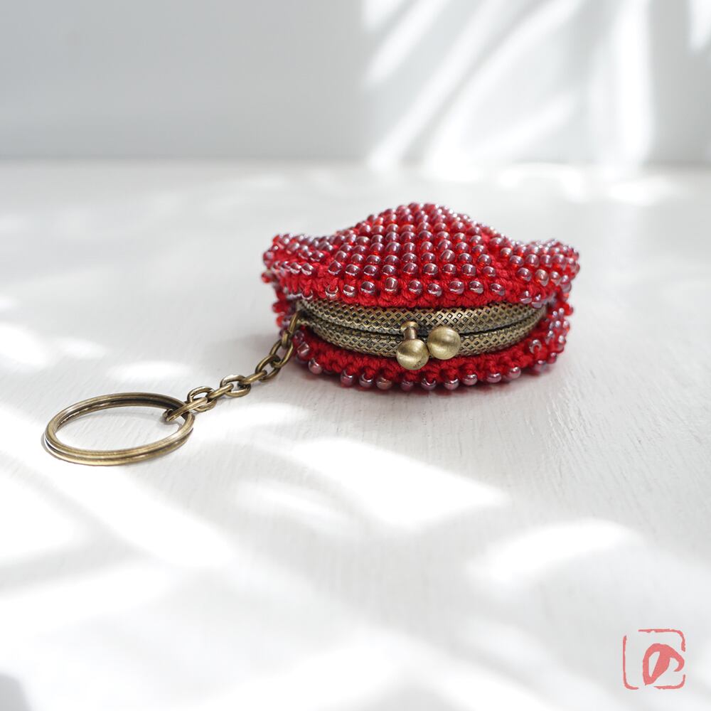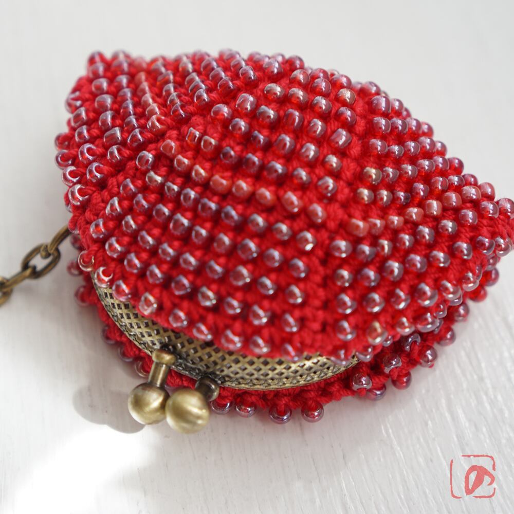 糸とビーズを赤で揃えて、可愛らしく仕上げました。