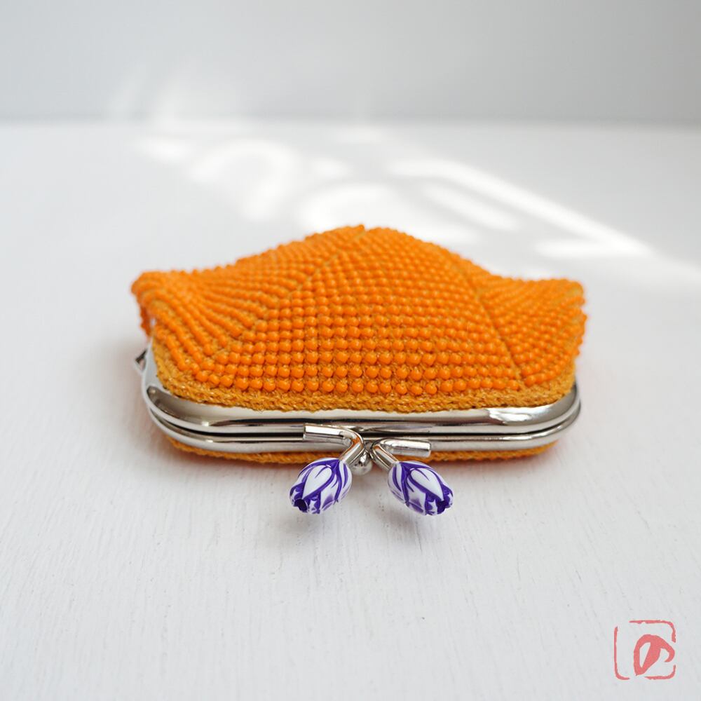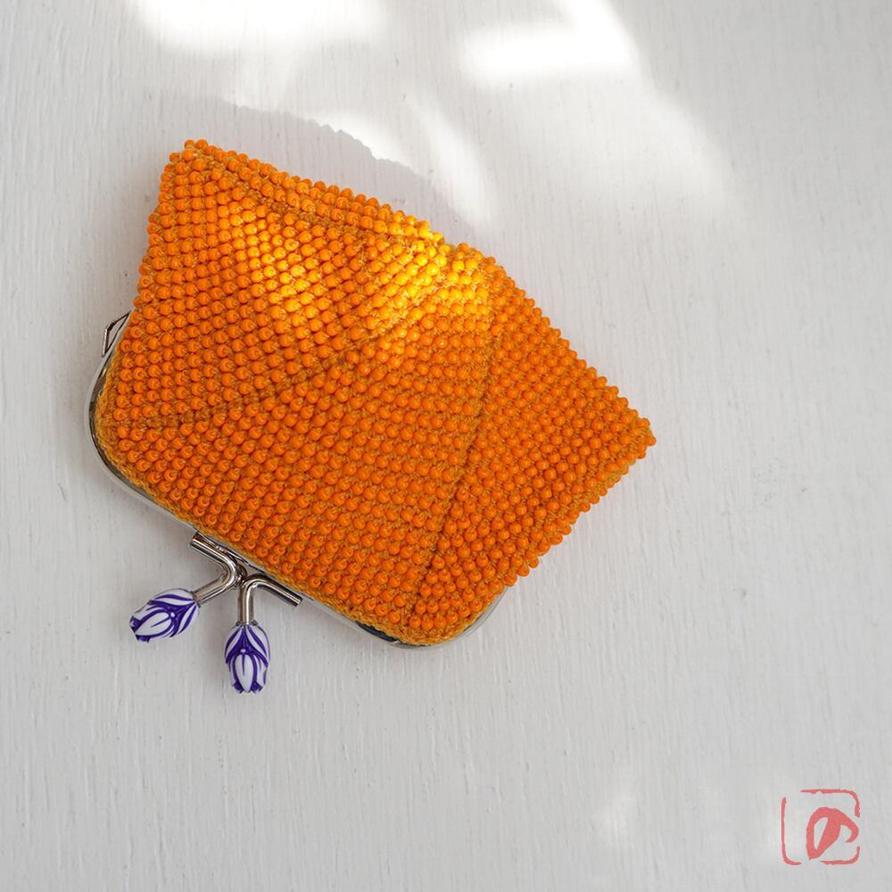 シードビーズをひとつぶづつ全面に編み込んだ、上質ながま口です。