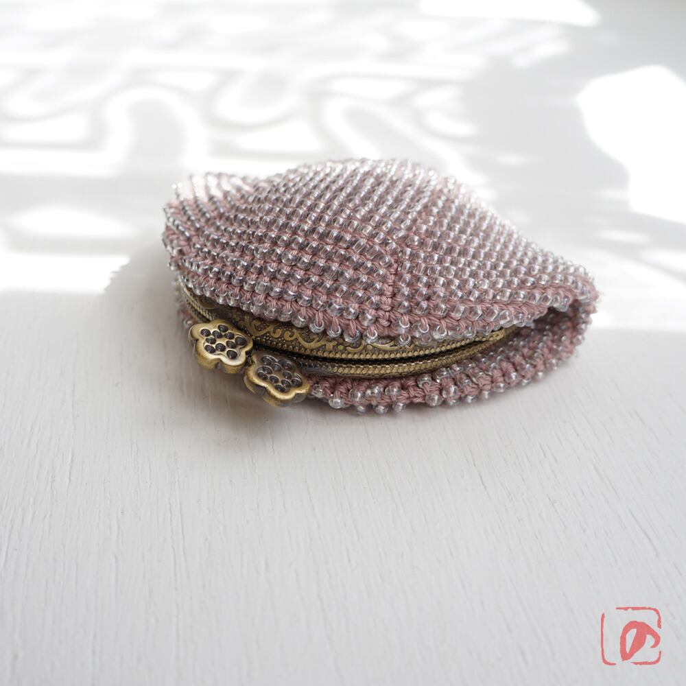 ばあば作 ♡ 総ガラスビーズのがま口(rose grise・1694)