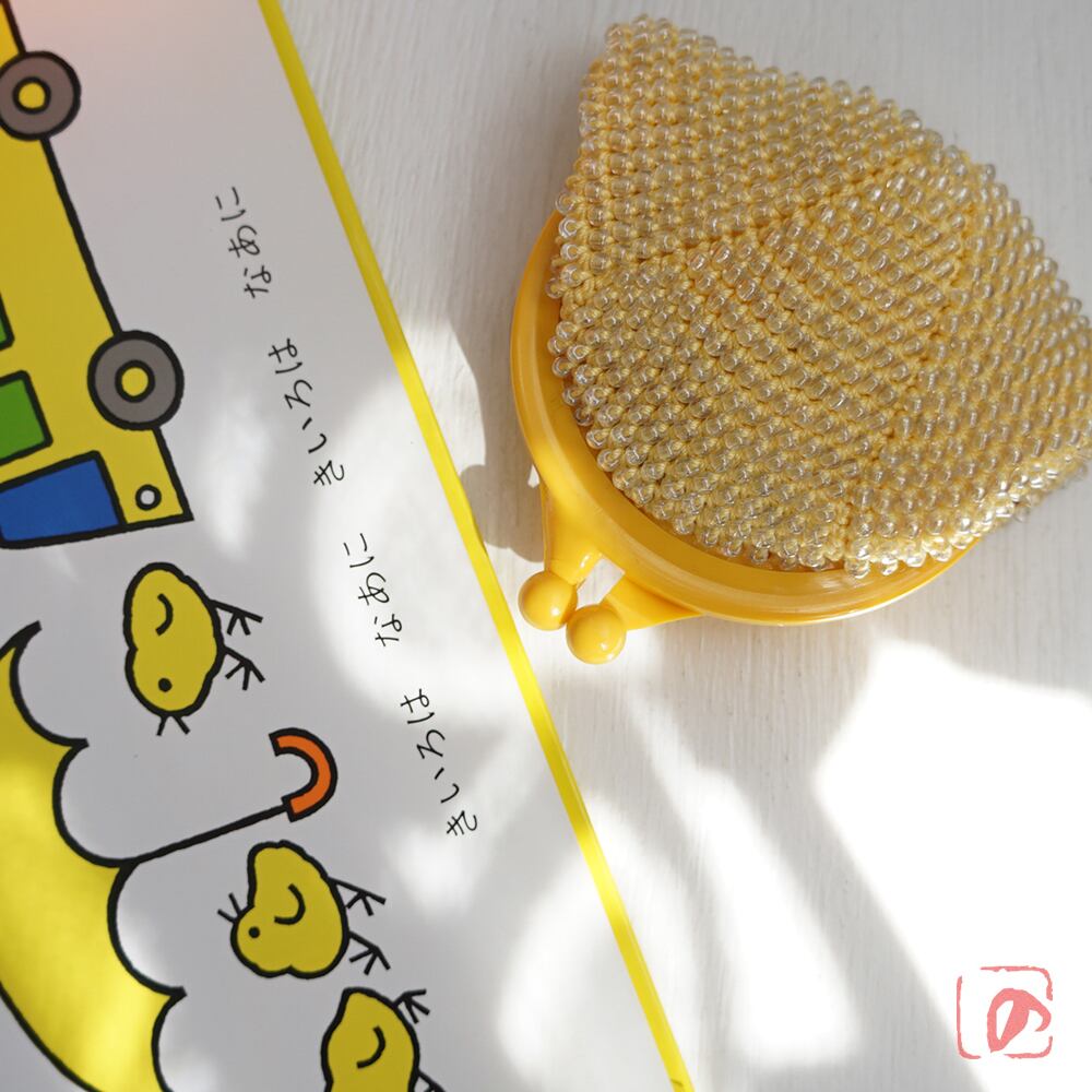 ばあば作☆☆ガラスビーズのこどもがま口(きいろ・1993)