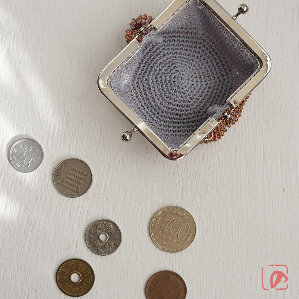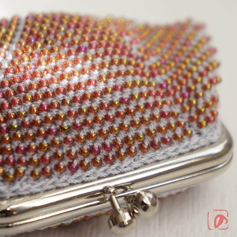 日本製のシードビーズをひとつぶづつ、全面に編み込みました。