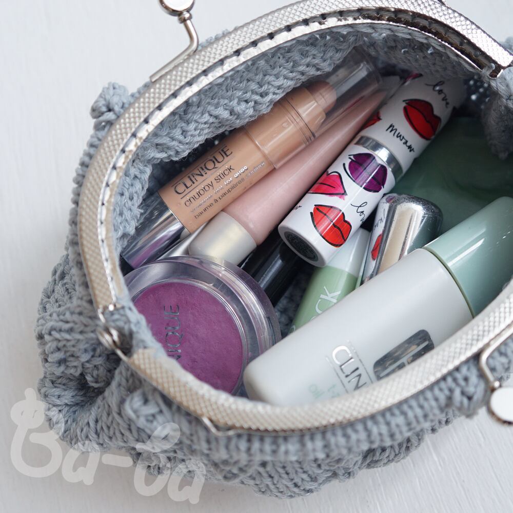 底部分を大きく編み、たっぷり入る大きめポーチになりました。