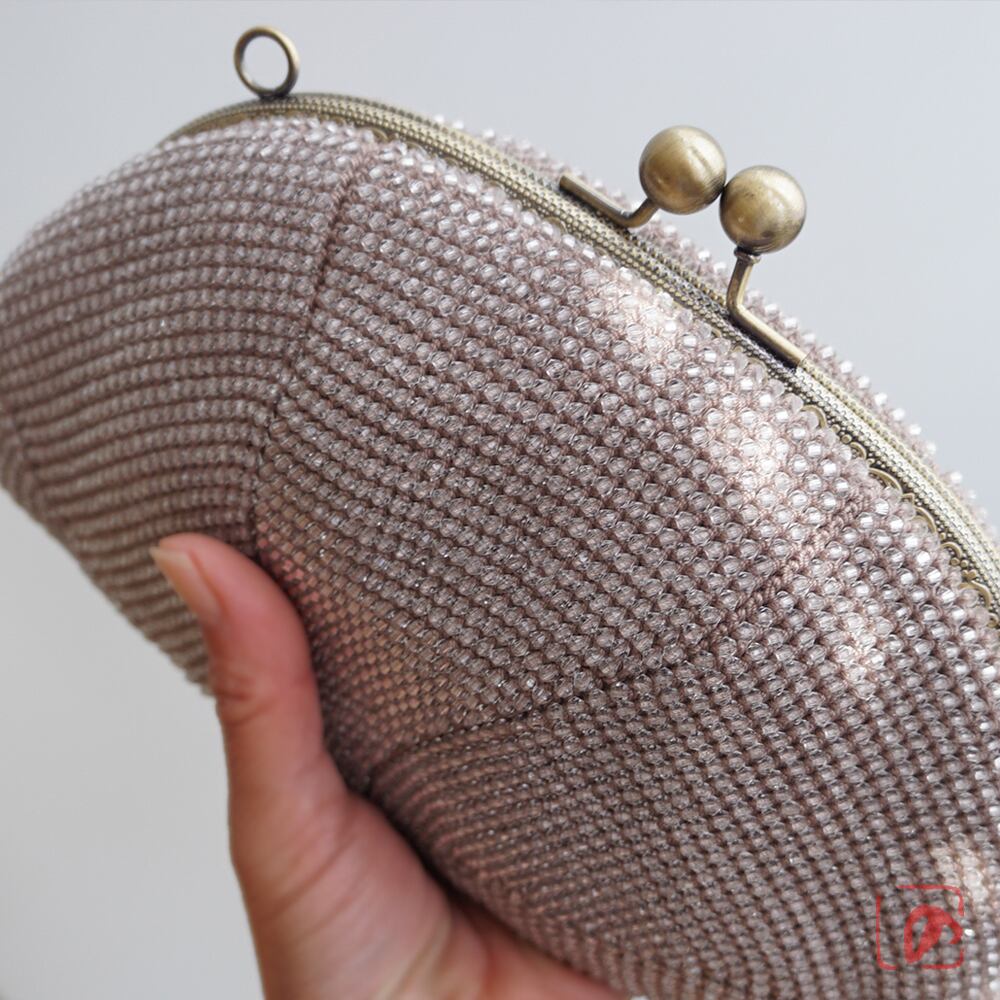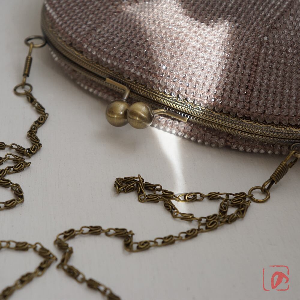 ばあば作☆キラキラ☆アクリルビーズのバッグ(rose fanée・1992)