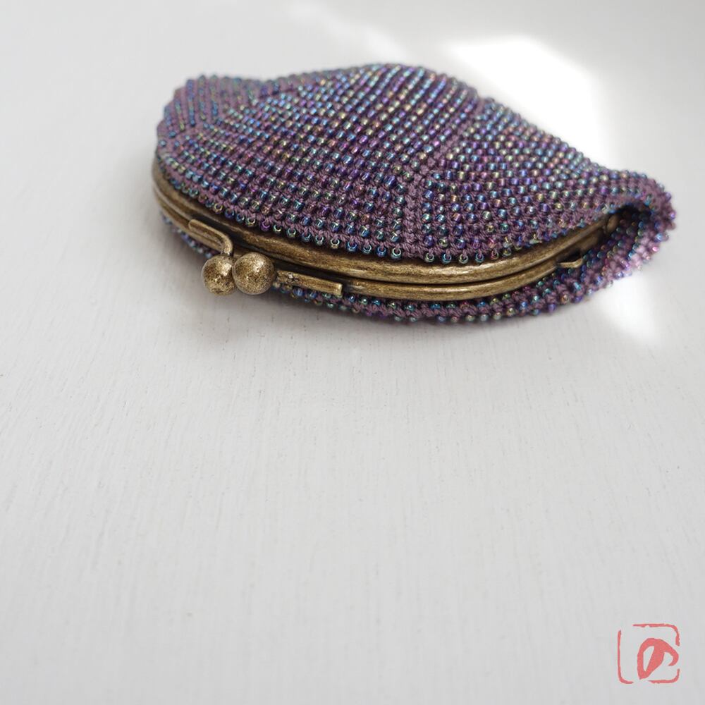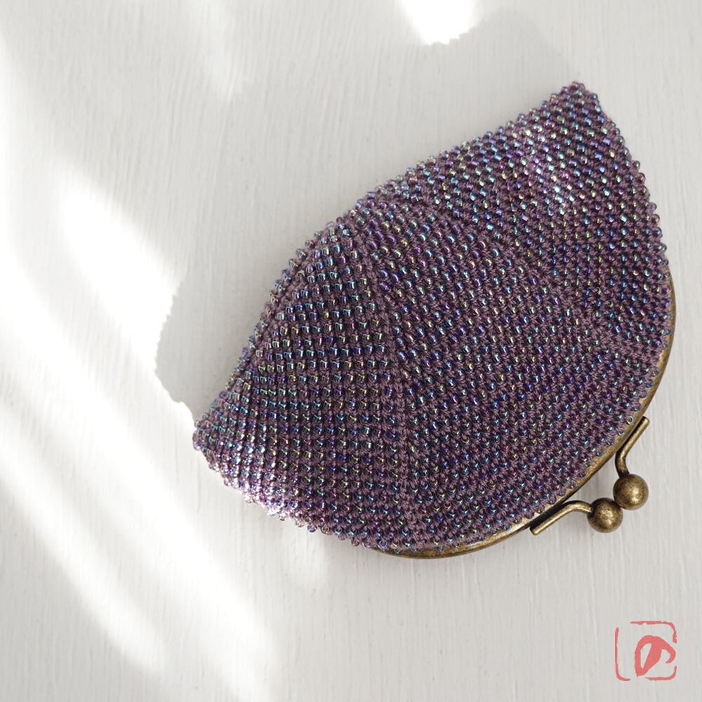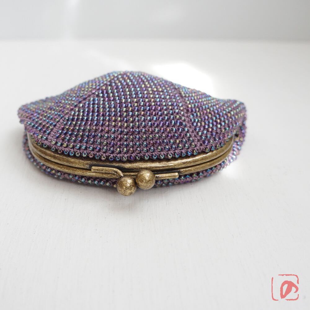 ばあば作 ❖ シードビーズの大きめ格別ながま口(暁紫*・2005)