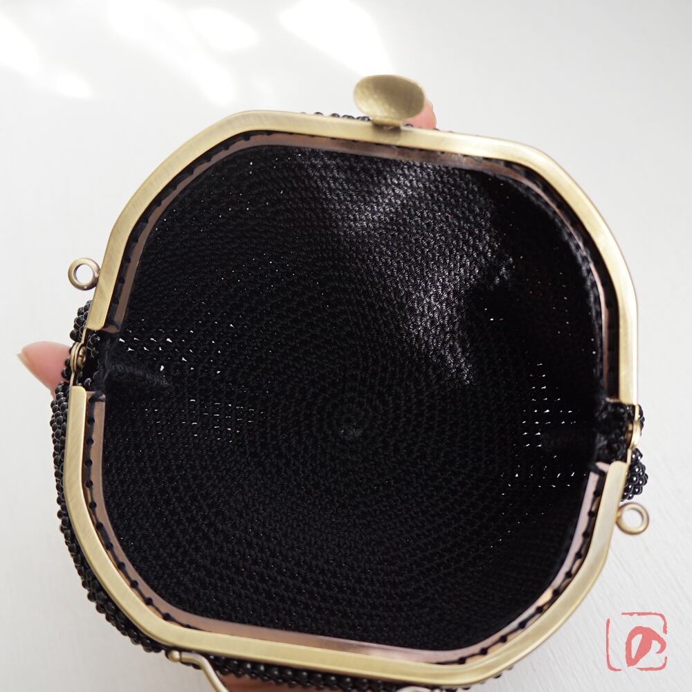 3mmのガラスビーズをひとつぶづつ、全面に編み込んでポーチに仕上げました。
