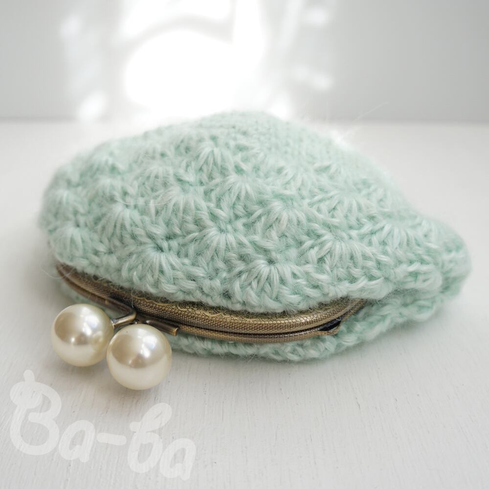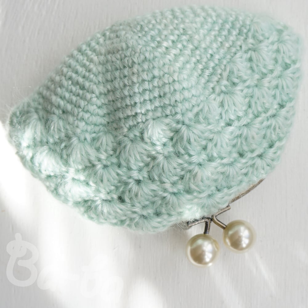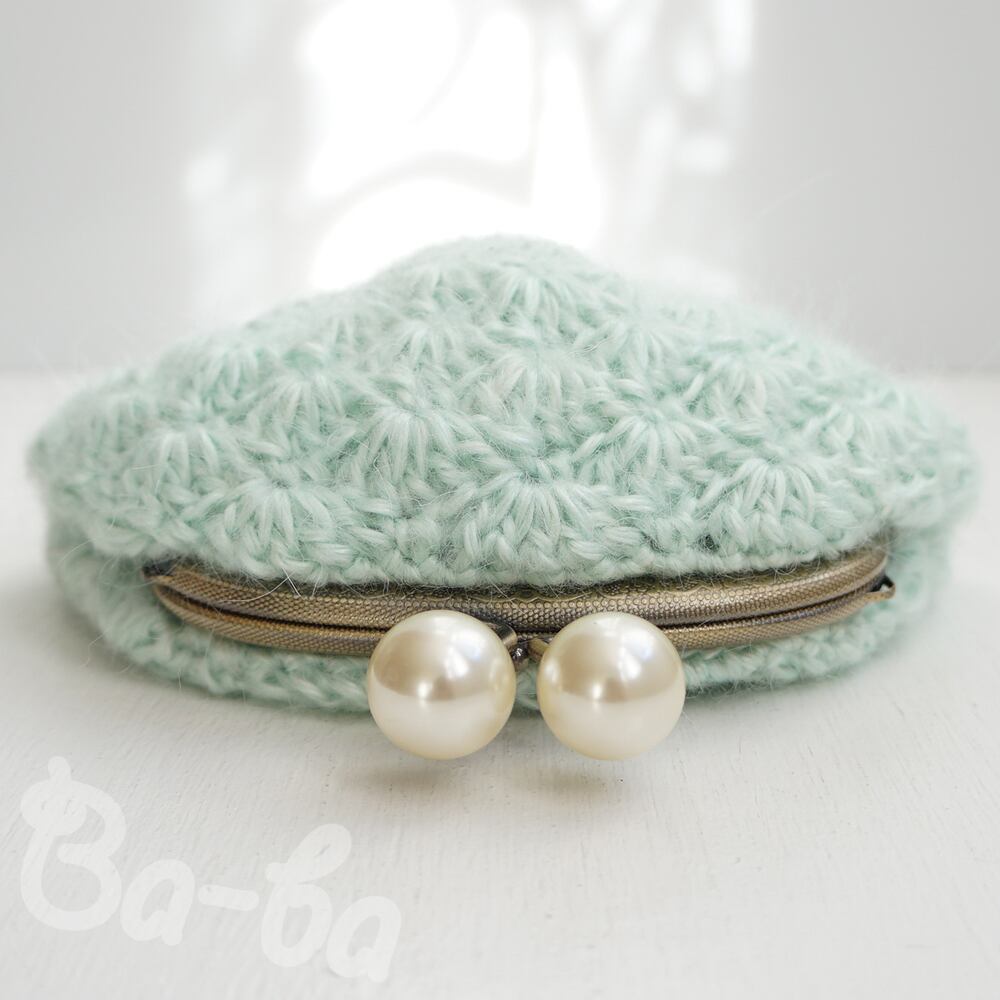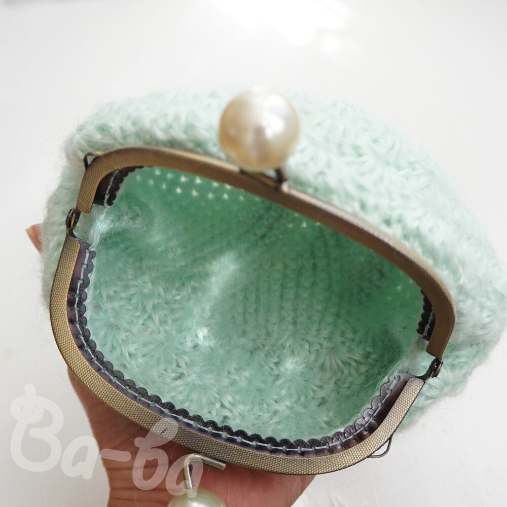 ばあば ♥ 松編みの、さらに大きめがま口(coolmint・C1726)