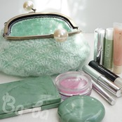 パールつまみの口金で、よそいきポーチに仕上げました。