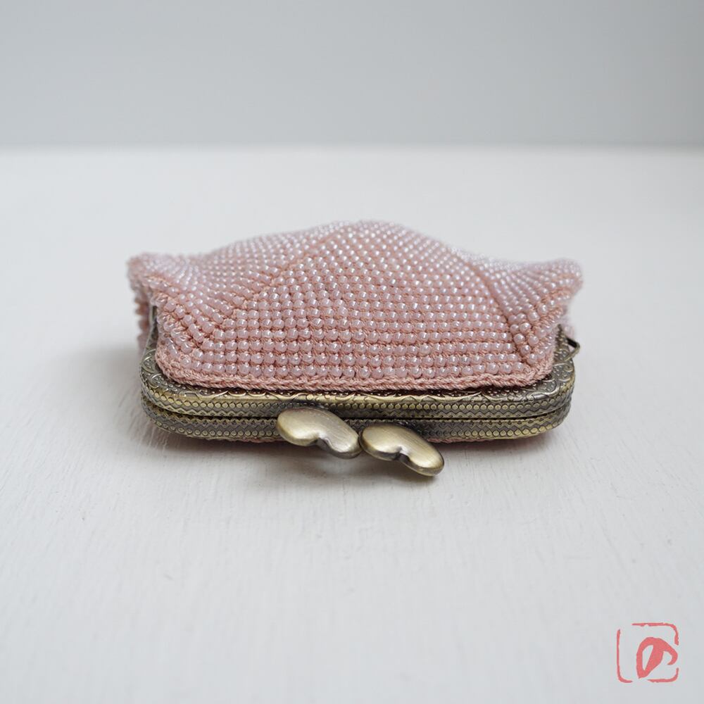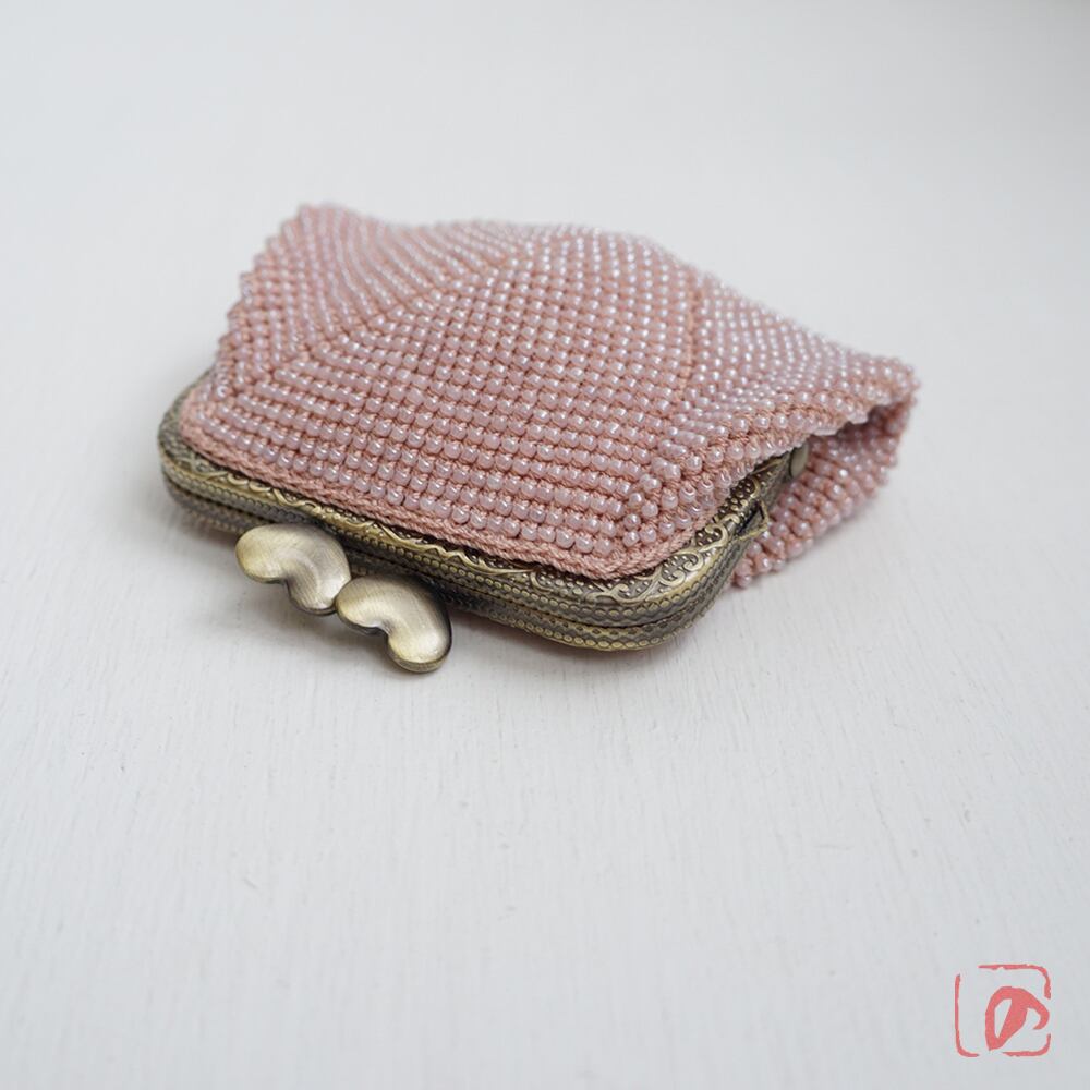 ばあば作 ♡ シードビーズのスクエアがま口(rose fané・1929)