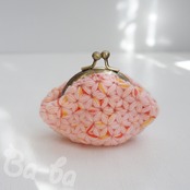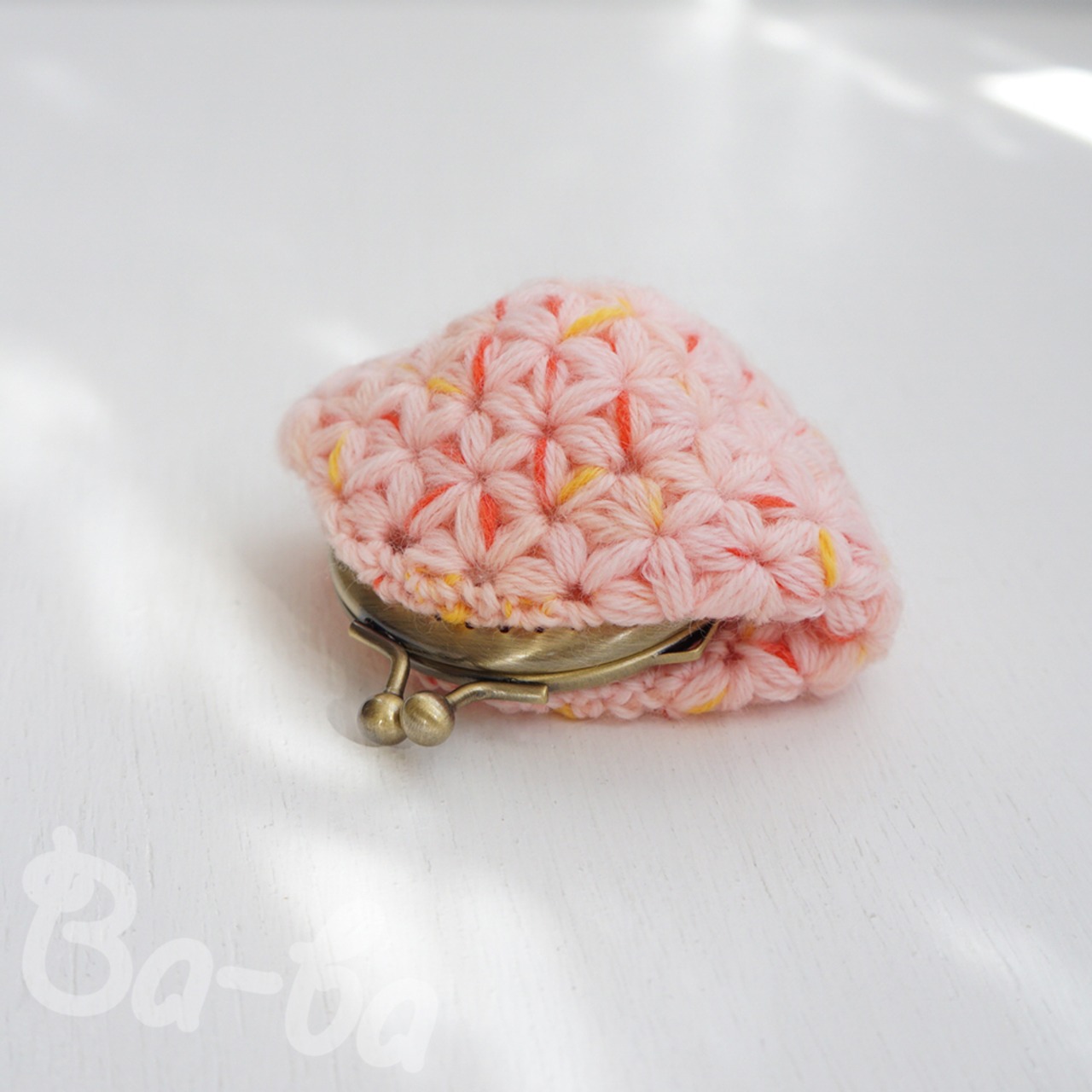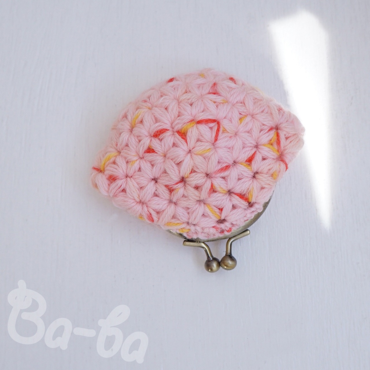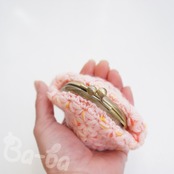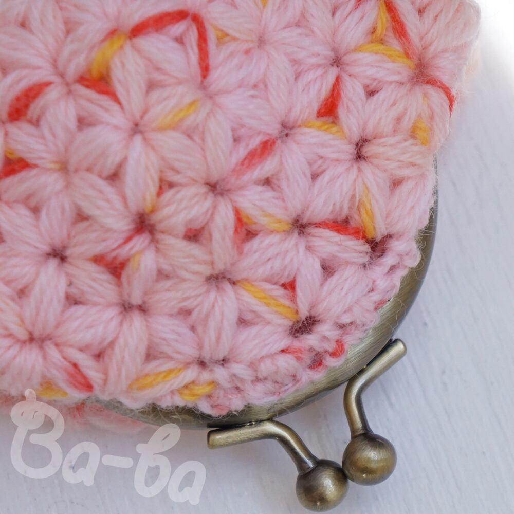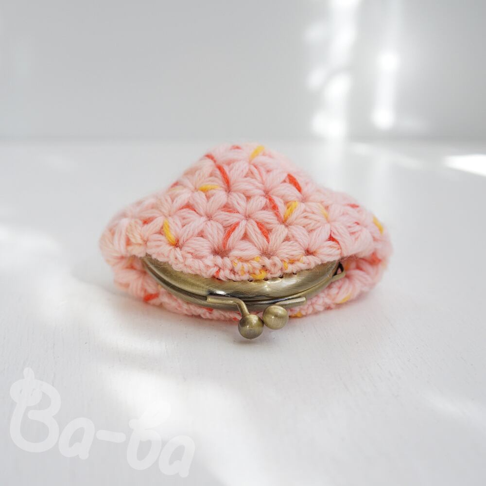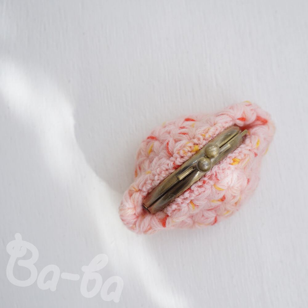 ばあば作・リフ編みのminiがま口(レトロピンク・C1716)