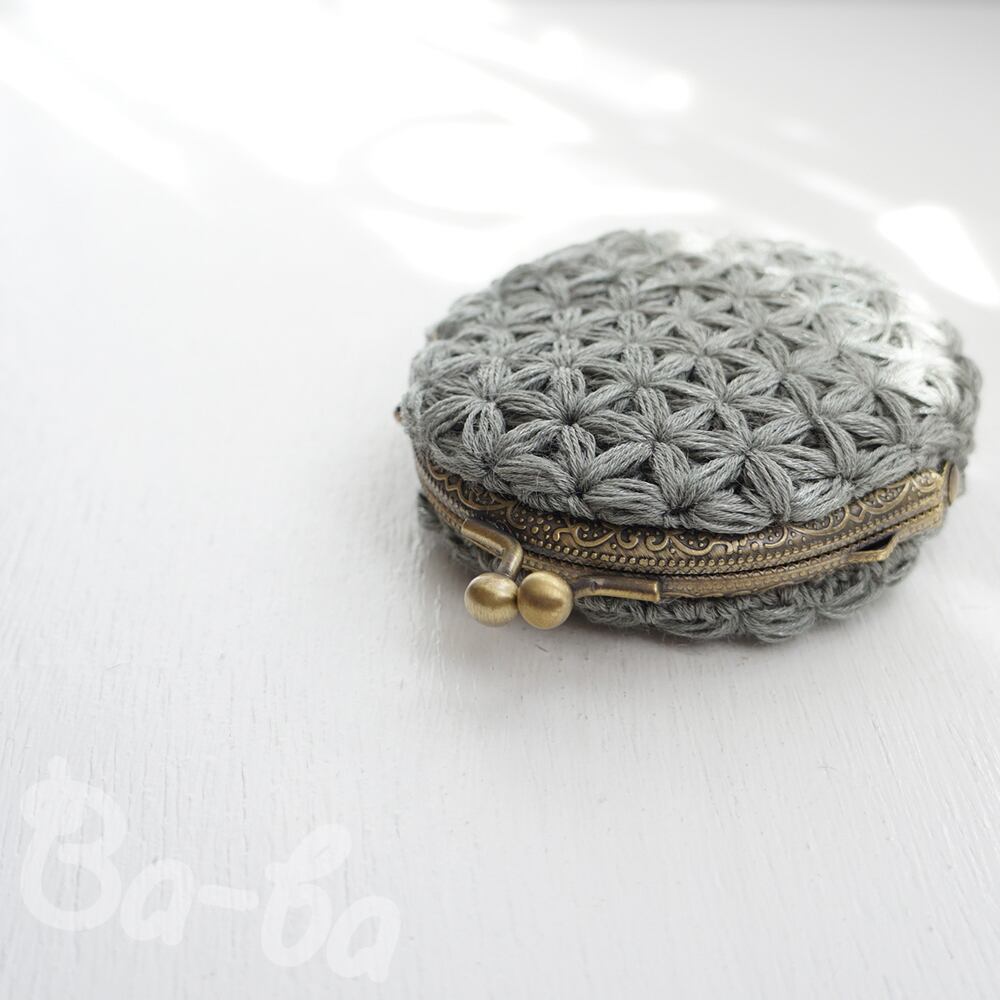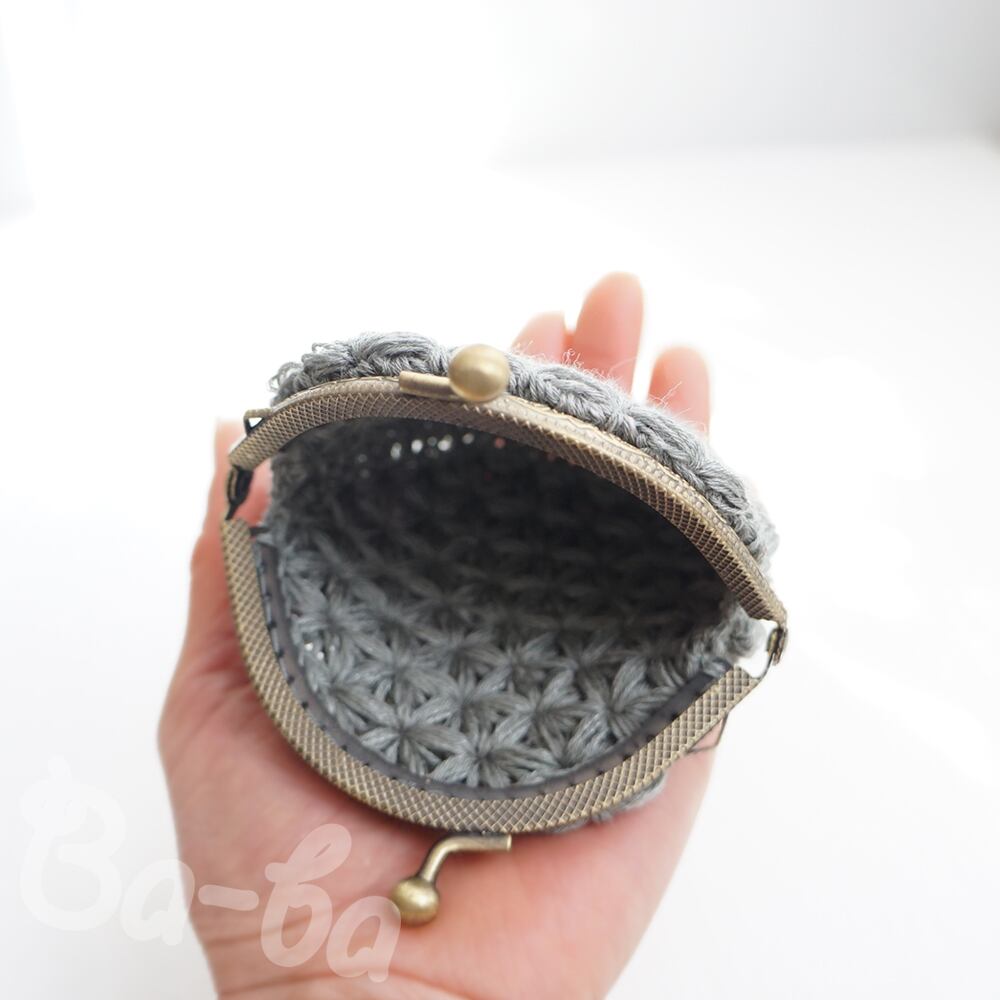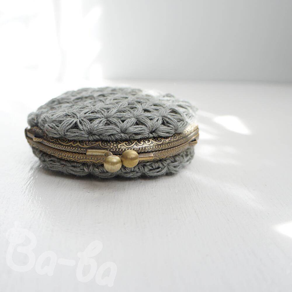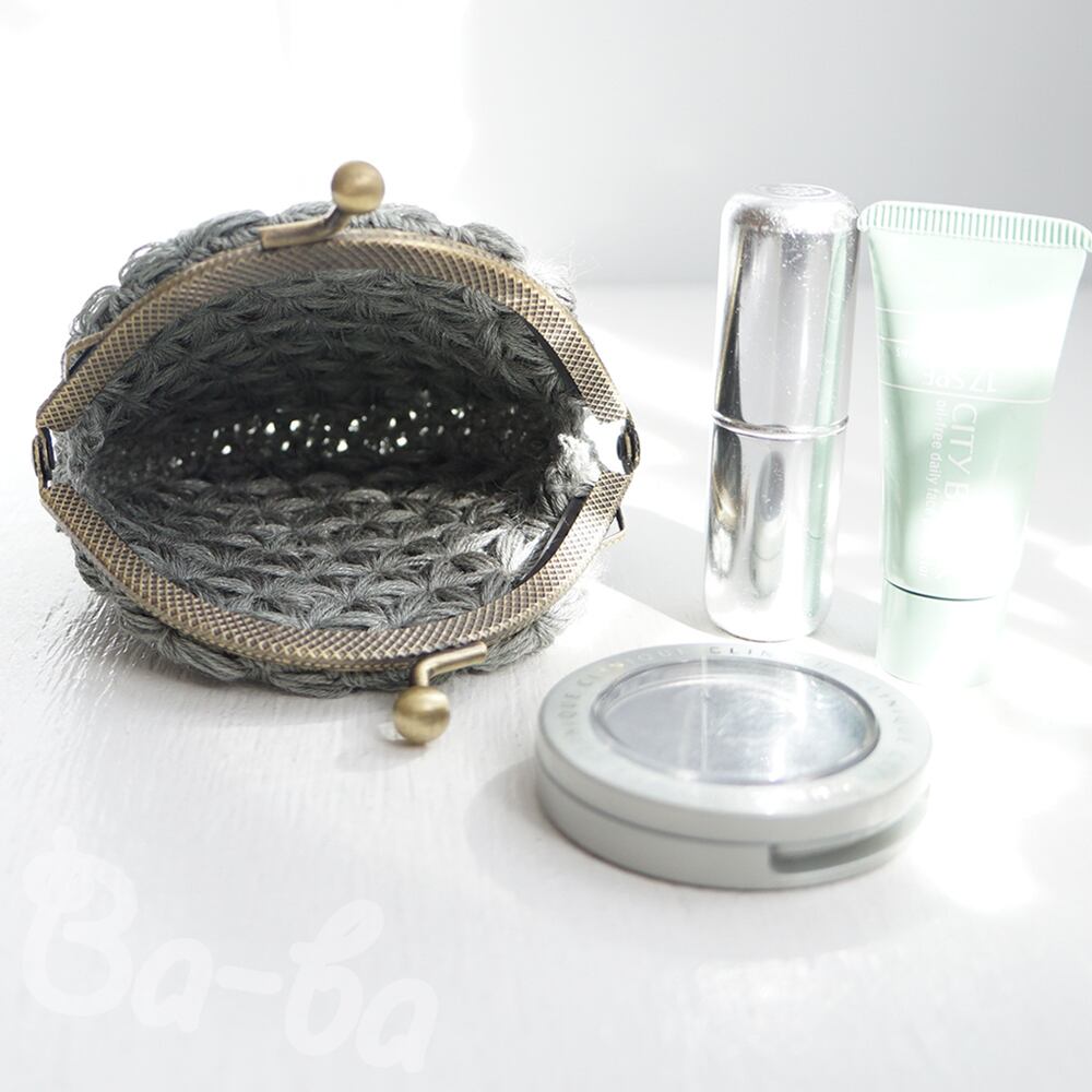 グレーの麻混紡糸をふんわりと編み上げ、シンプルな口金と組み合わせました。