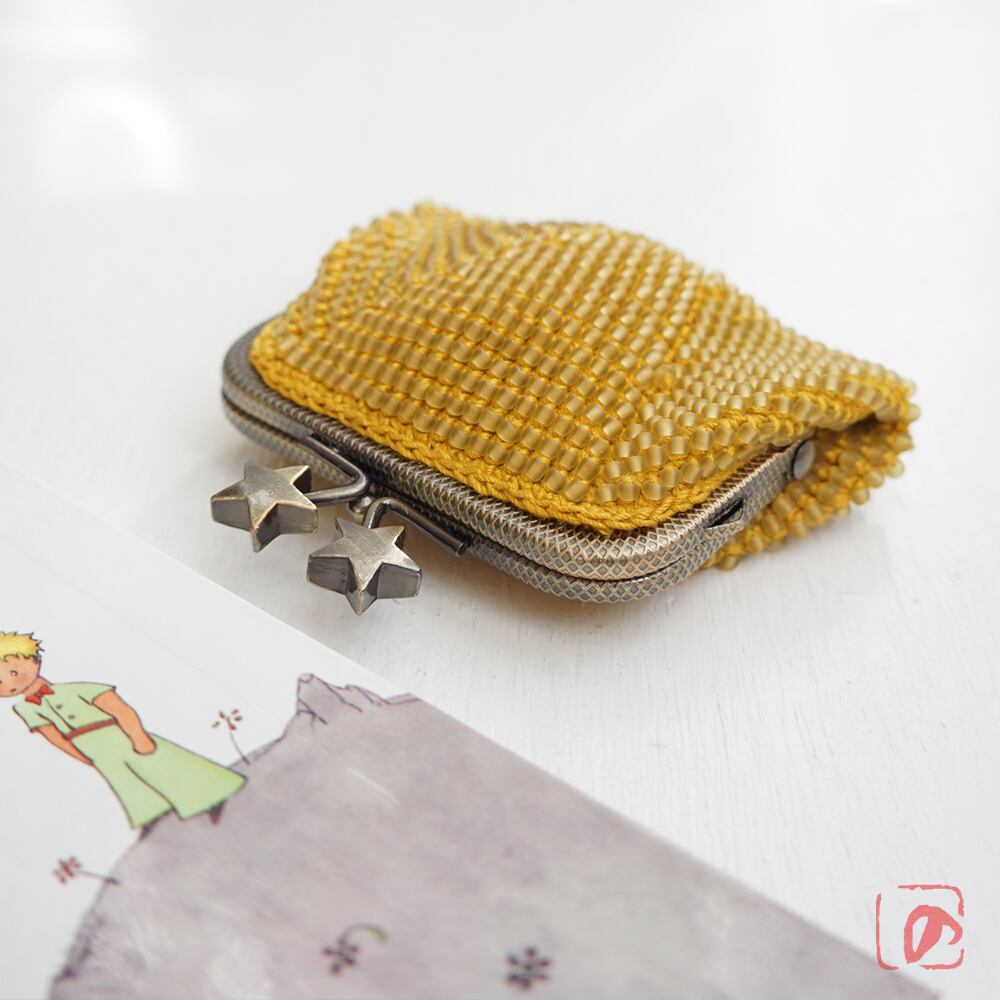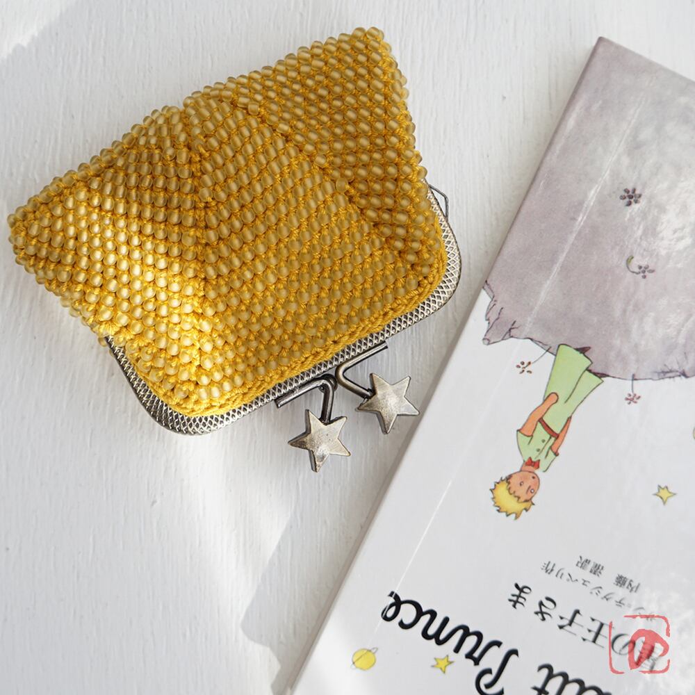 ばあば作☆☆総ガラスビーズのスクエアがま口(星朧・2038)