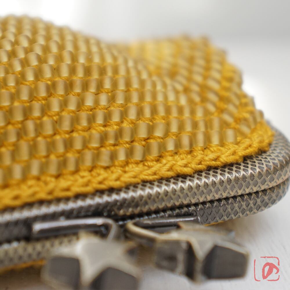 フロストビーズのマスタード色の編み地に星の口金を組み合わせました。