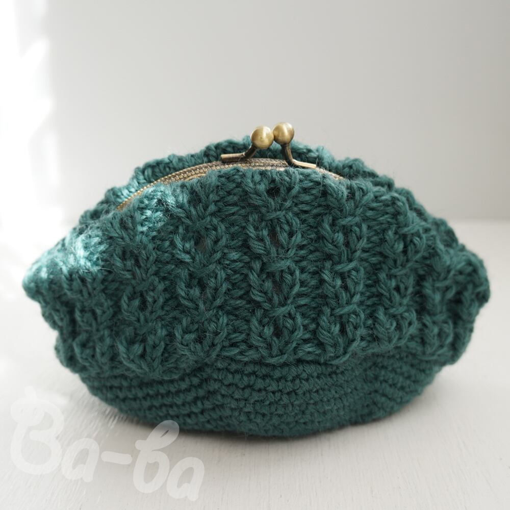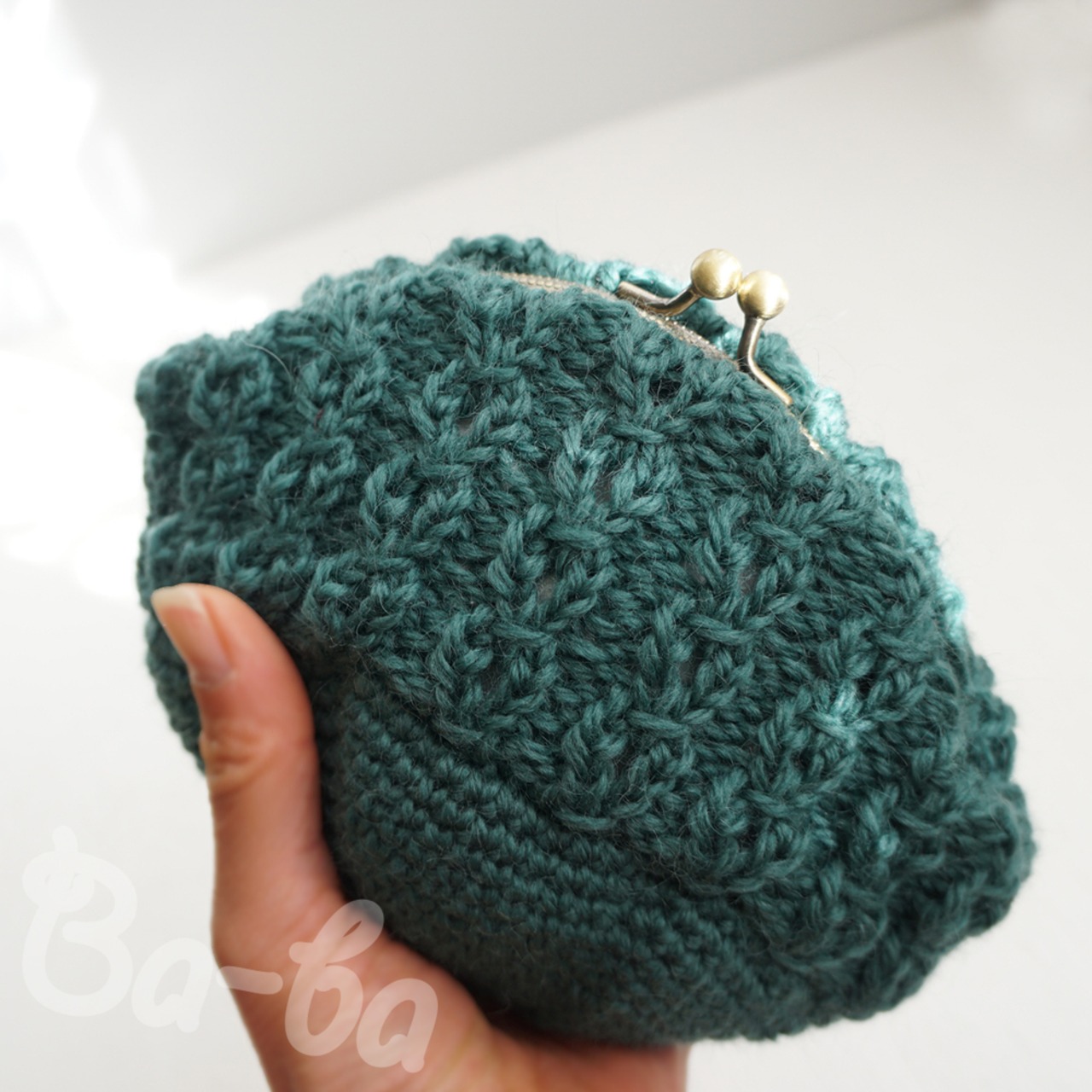 ばあば ♥ ノット編みの、さらに大きめがま口(knot-moss・C1743)