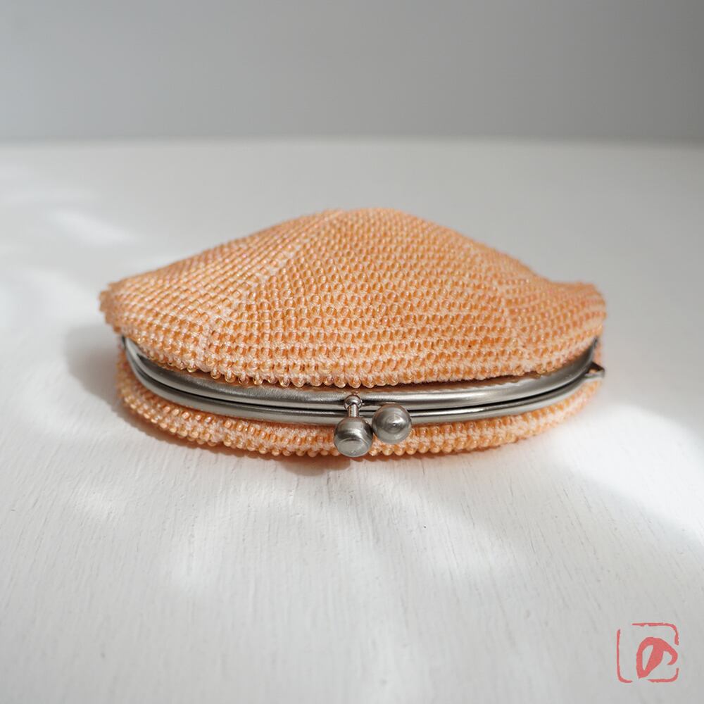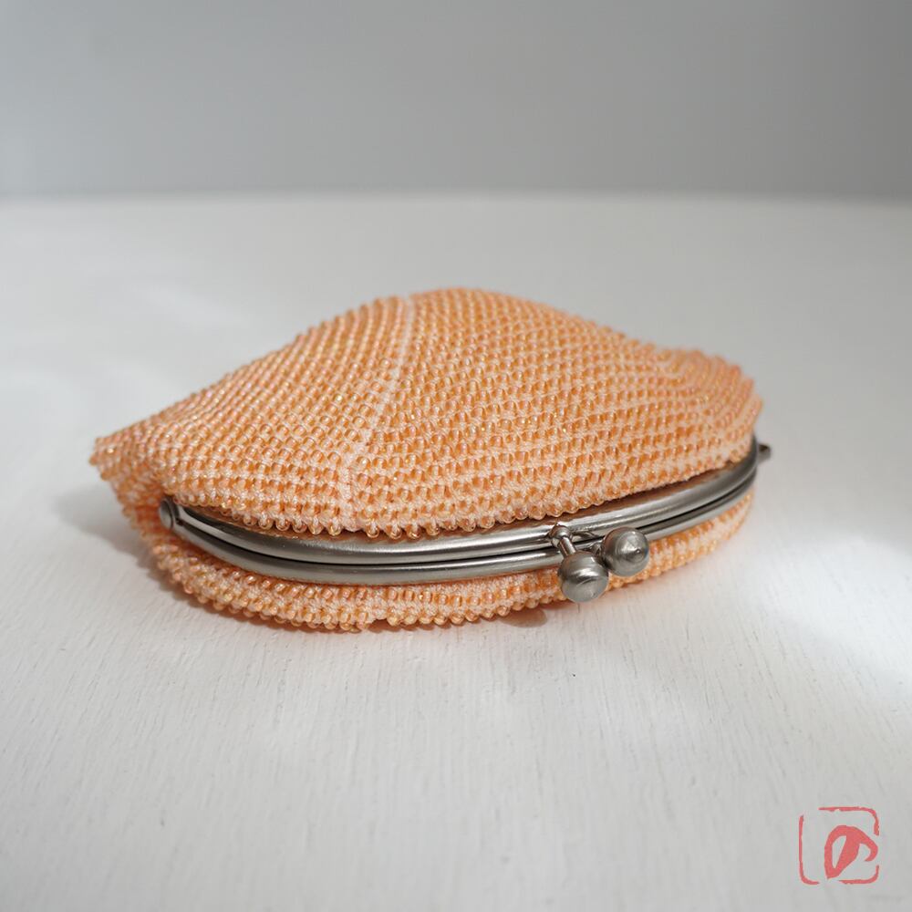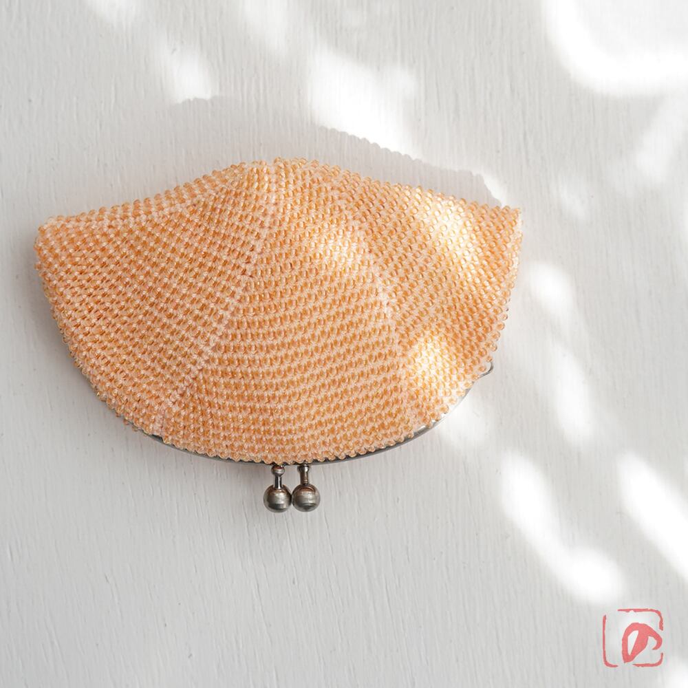 ピーチの糸×同色のクリアピーチのビーズの編み地です。