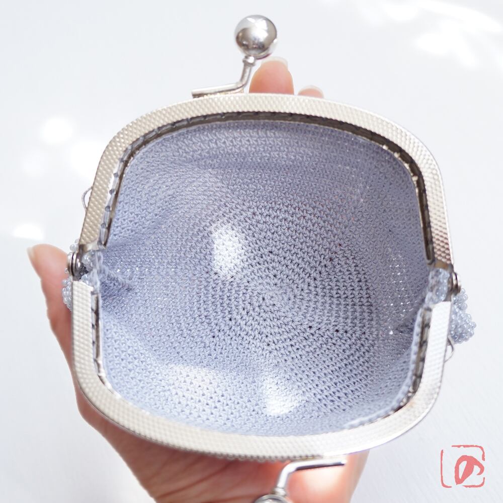 2mmのシードビーズをひとつぶづつ全面に編み込んだ、上質ながま口です。