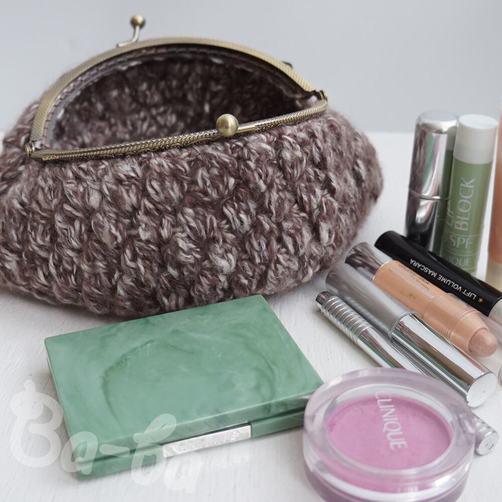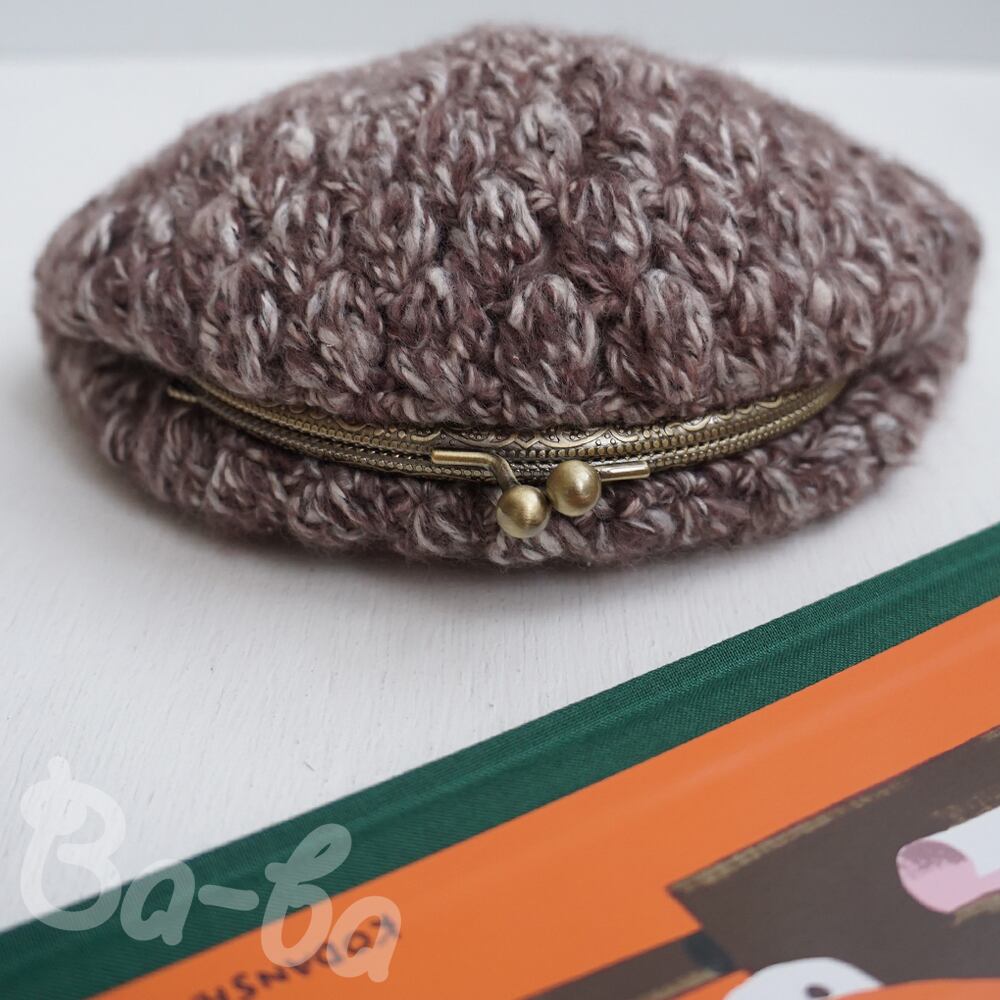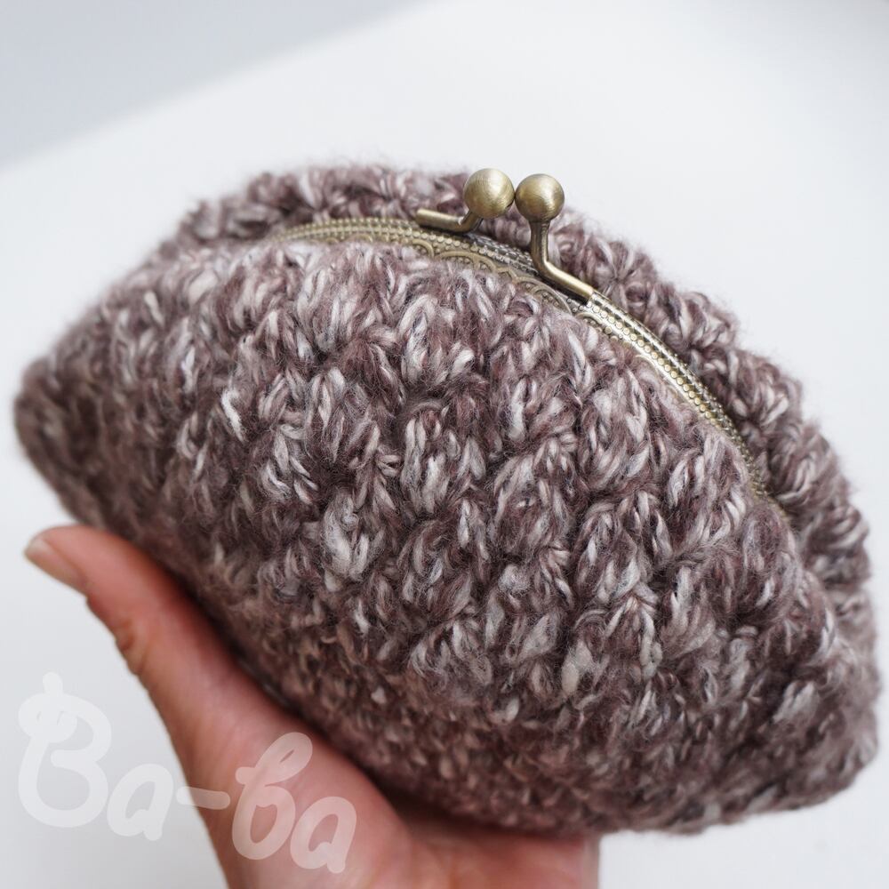 ばあば ♥ 玉編みの、さらに大きめがま口(spotted skunk・C1747)