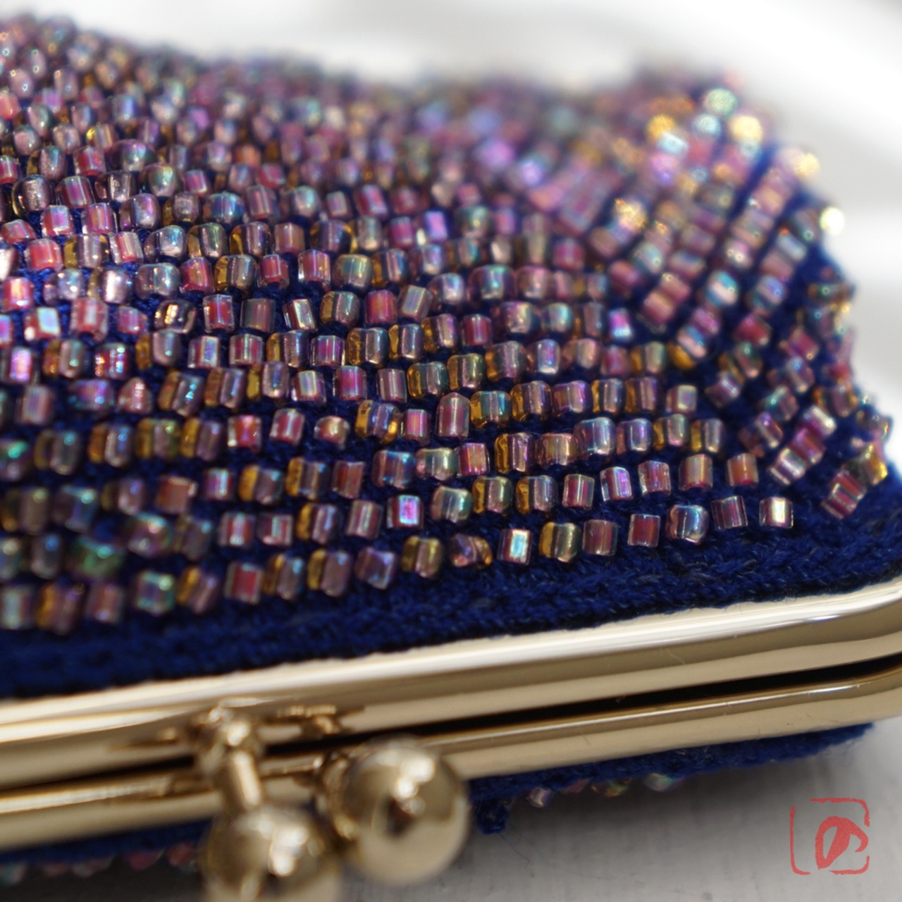 日本製のシードビーズをひとつぶづつ、全面に編み込みました。