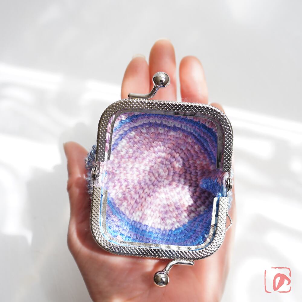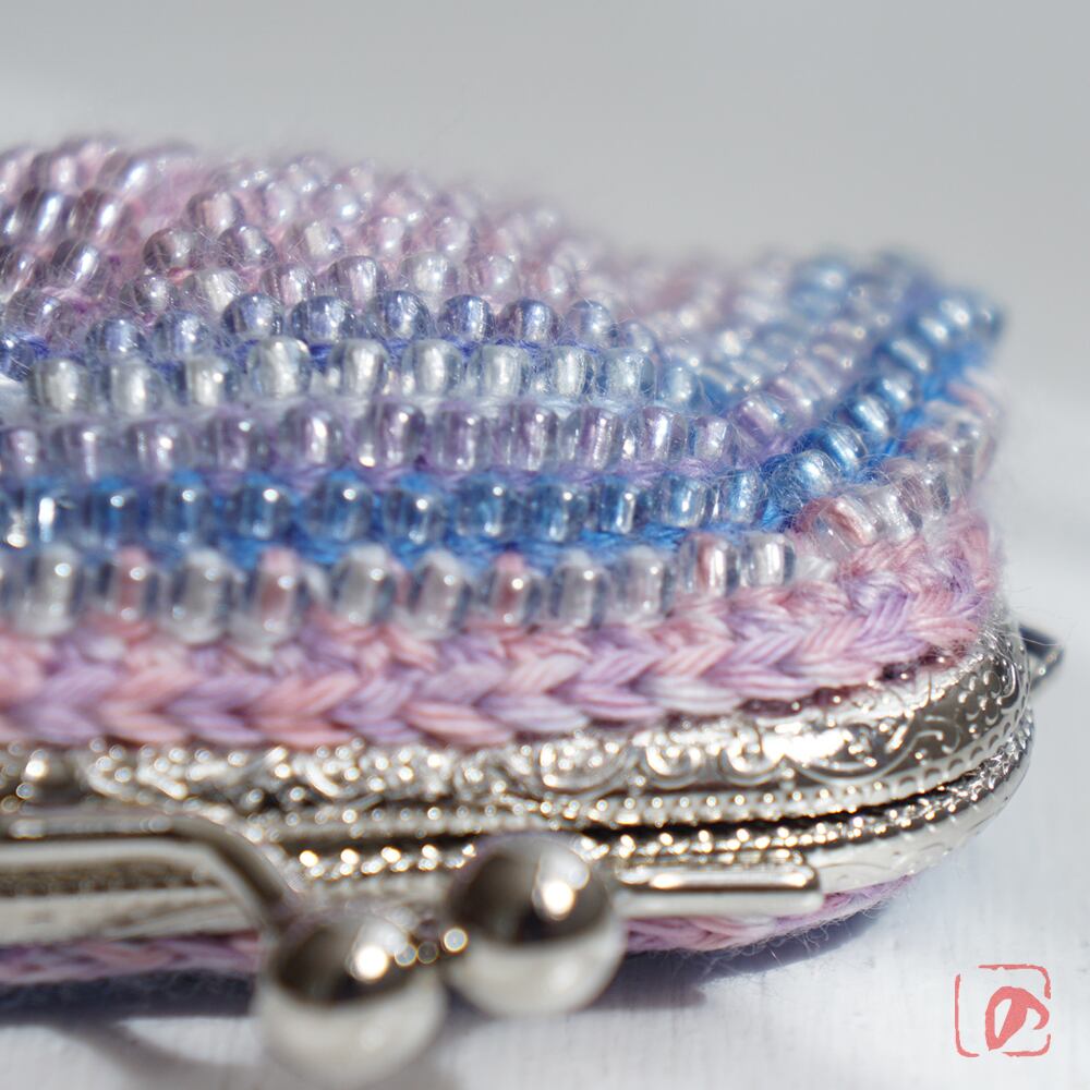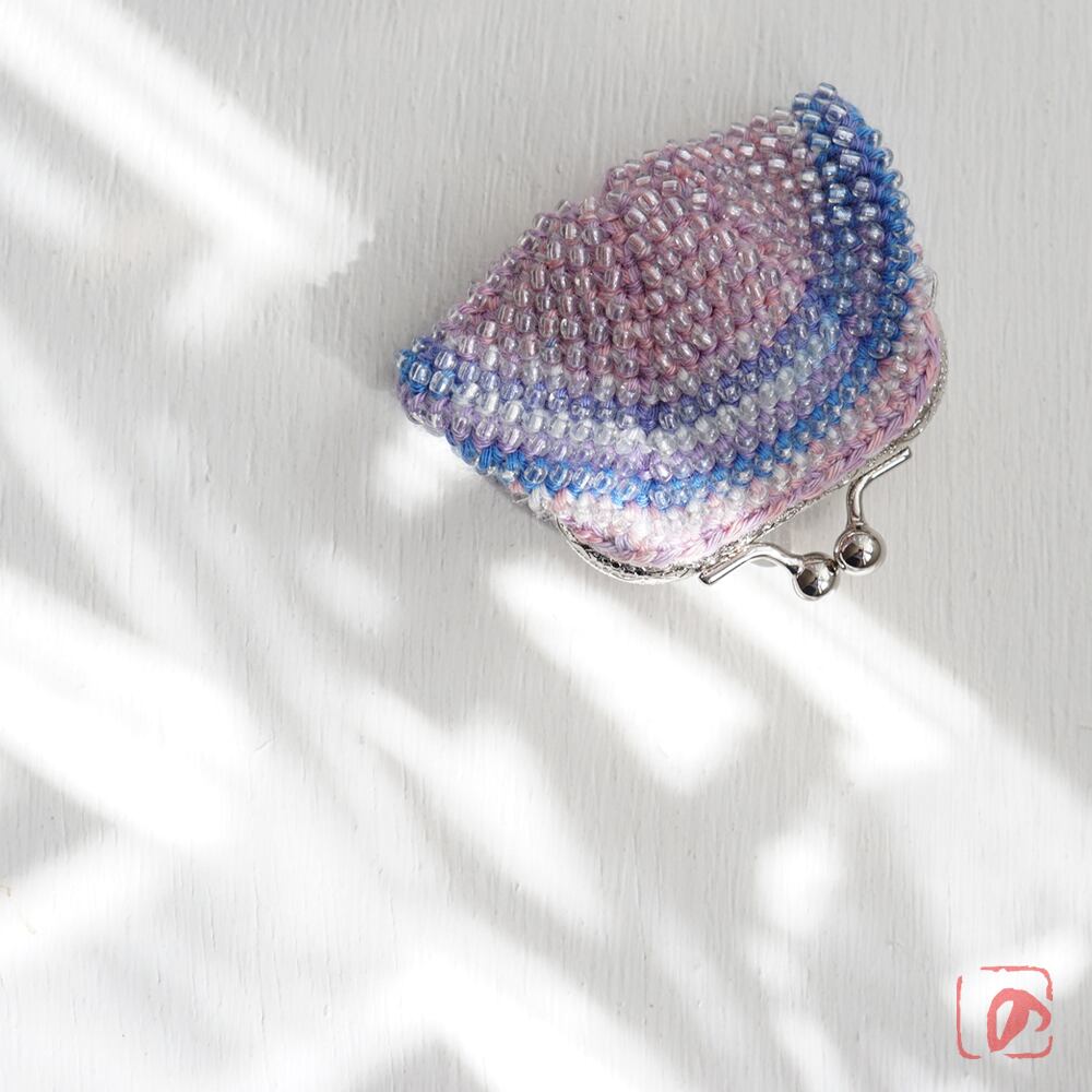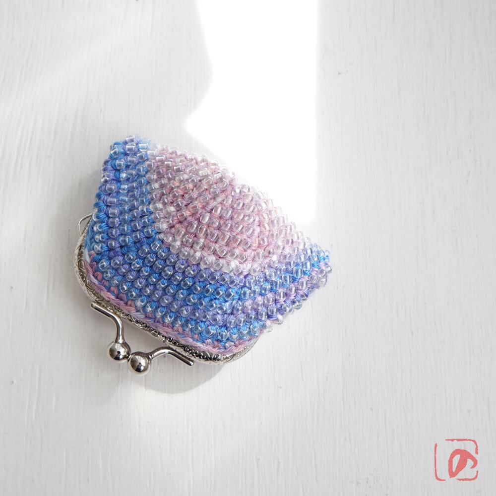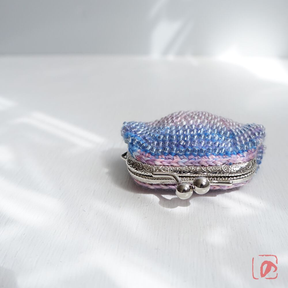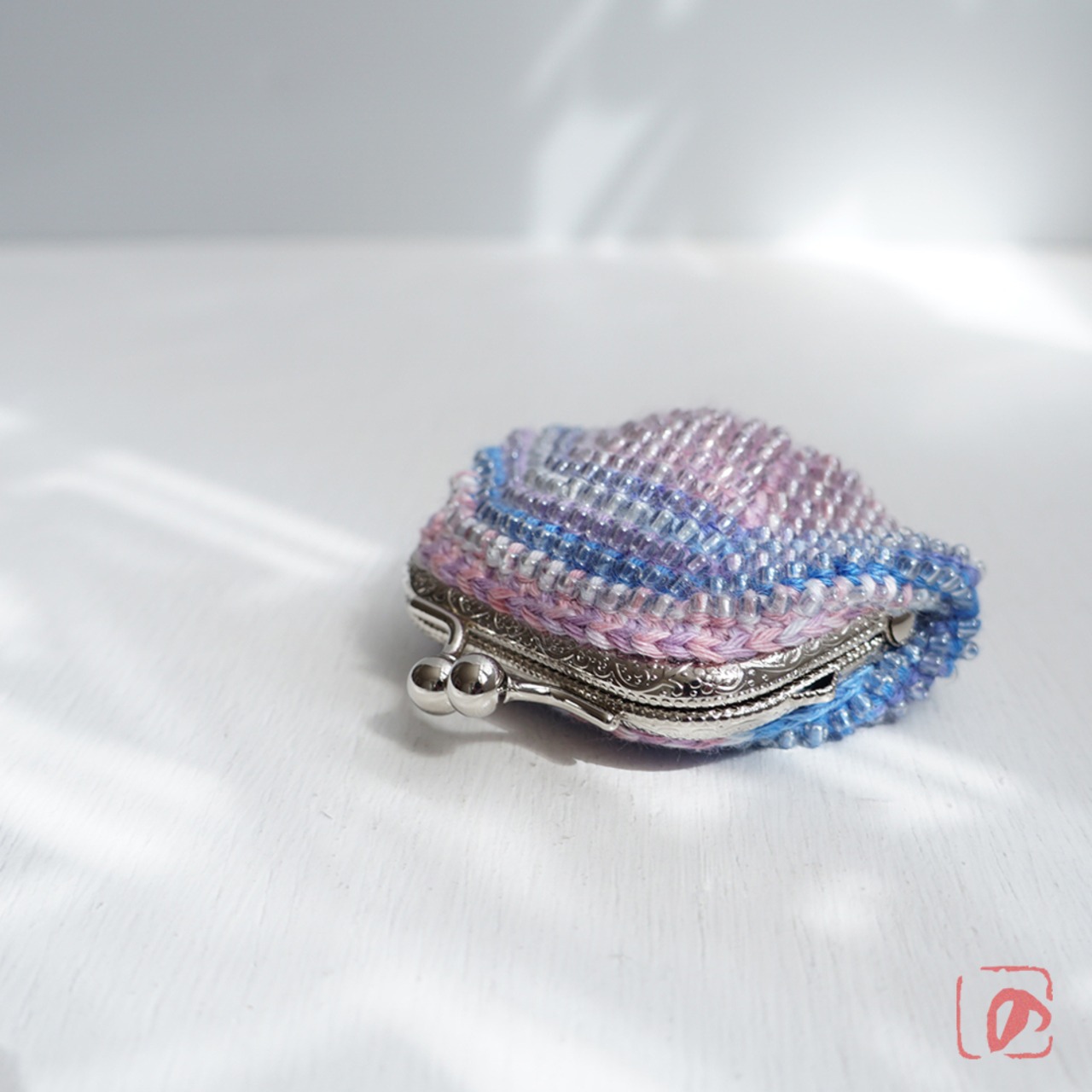 3mmのガラスビーズをひとつぶづつ編み込んだがま口です。
