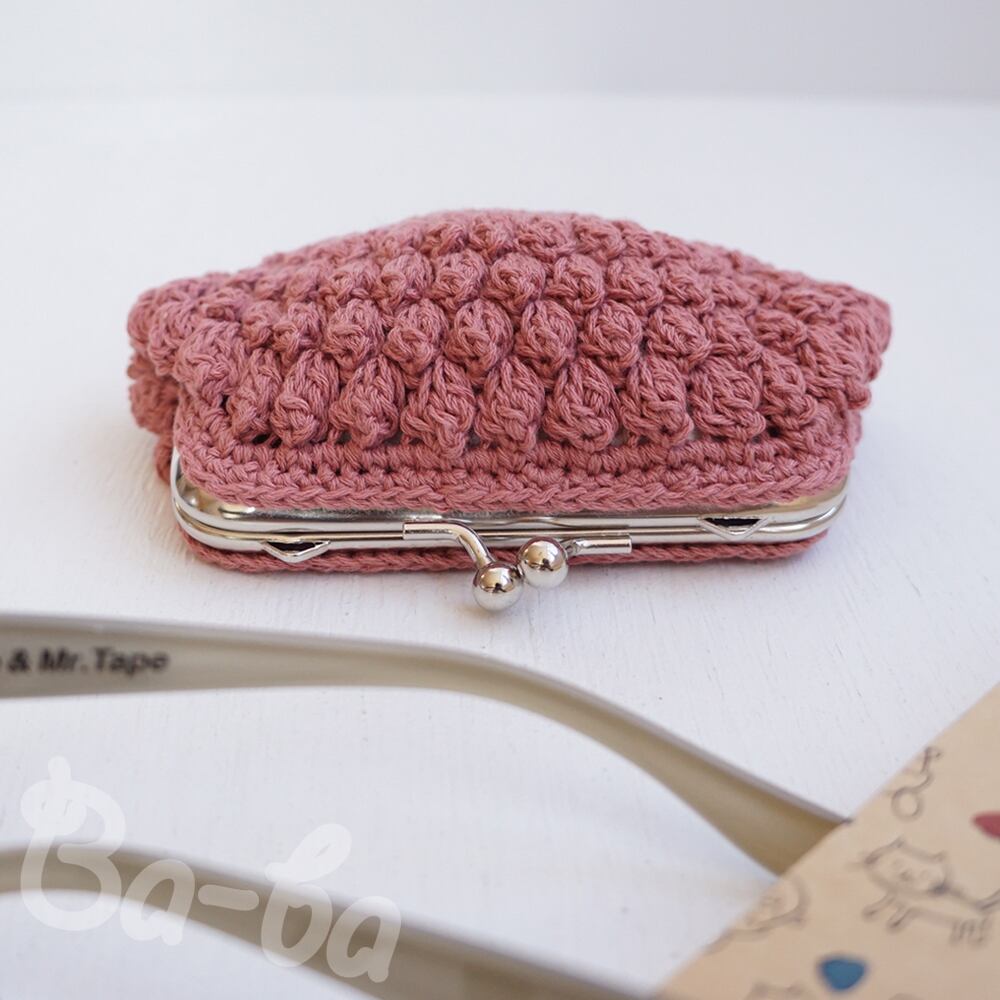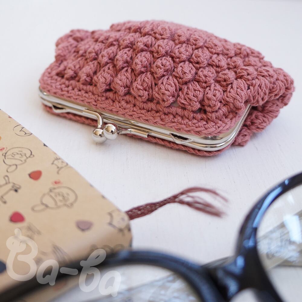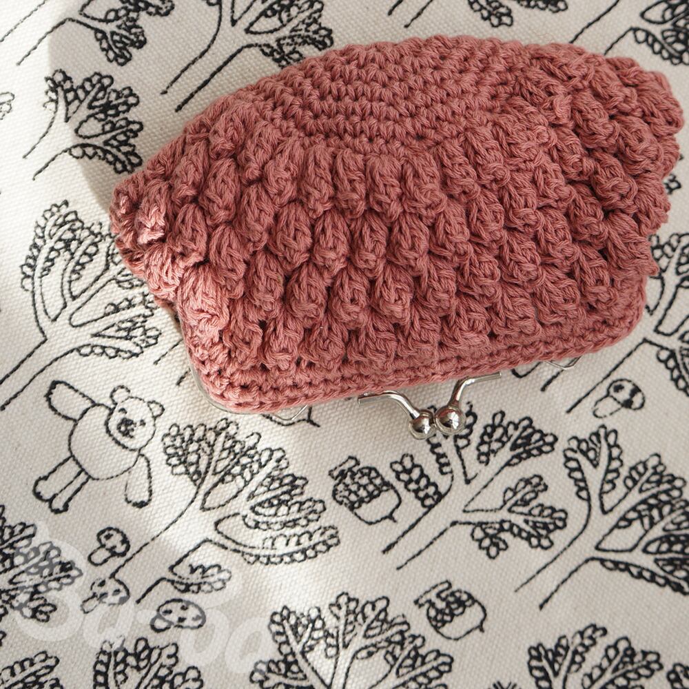 最後まで大事に使いたい、残り糸の編みがま口です。