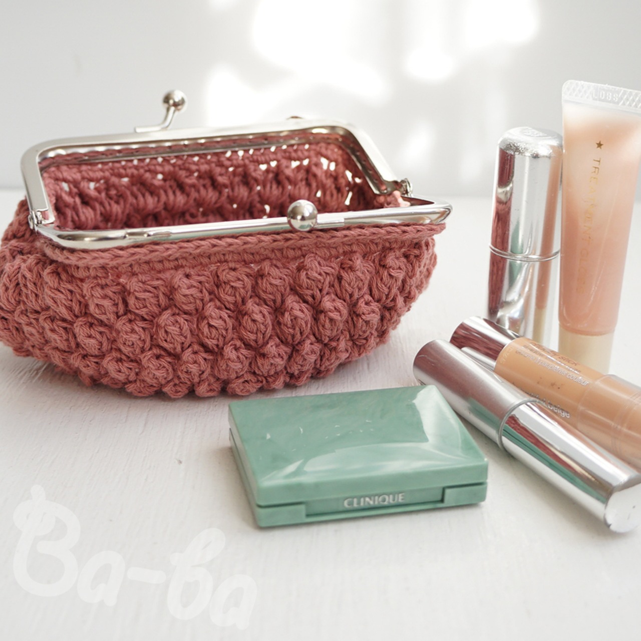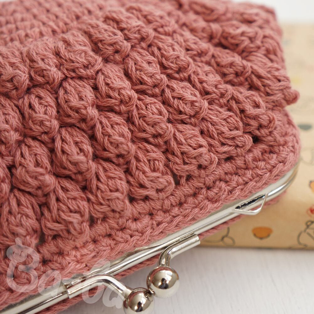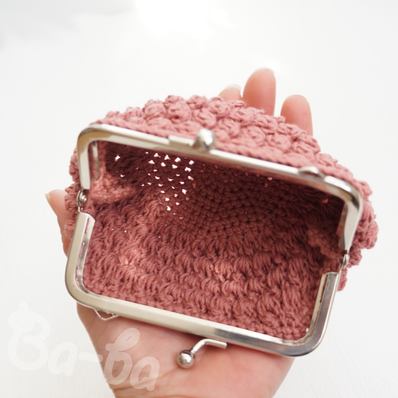 最後まで大事に使いたい、残り糸の編みがま口です。