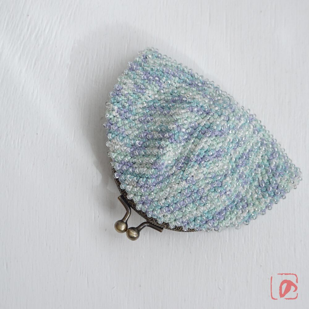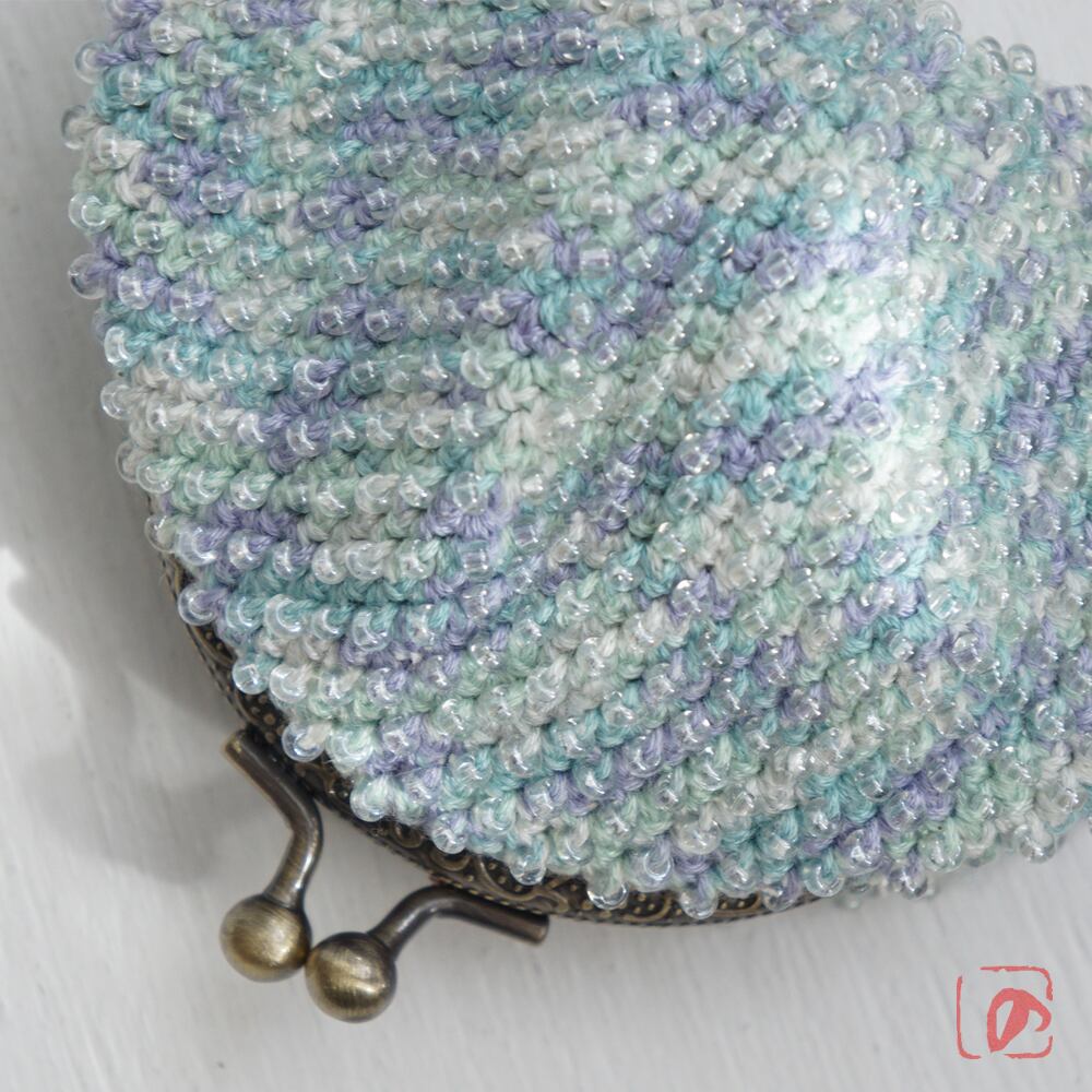一目飛ばしにビーズを編み込んだ、つぶつぶ感がカワイイがま口。