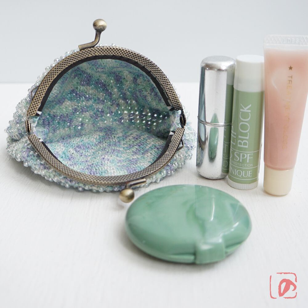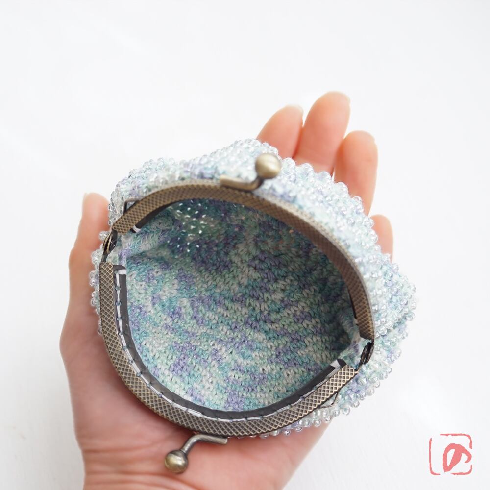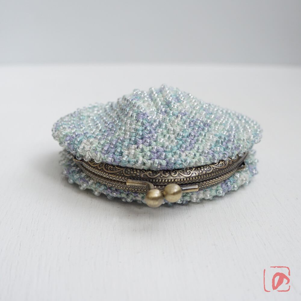 編みがま口×ビーズがま口のハイブリットつぶつぶビーズがま口です。