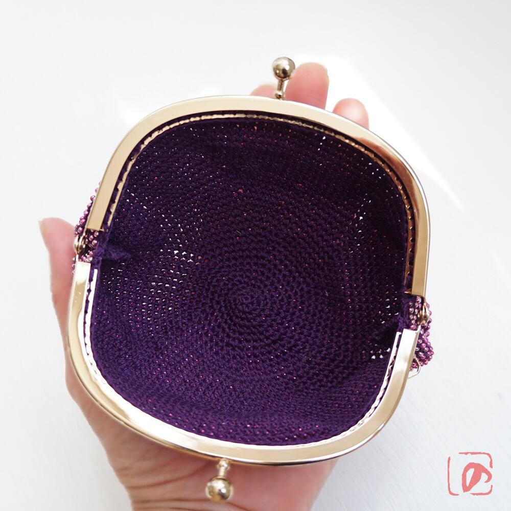 深紫の糸にメタリックなパープルのビーズを合わせた編み地です。