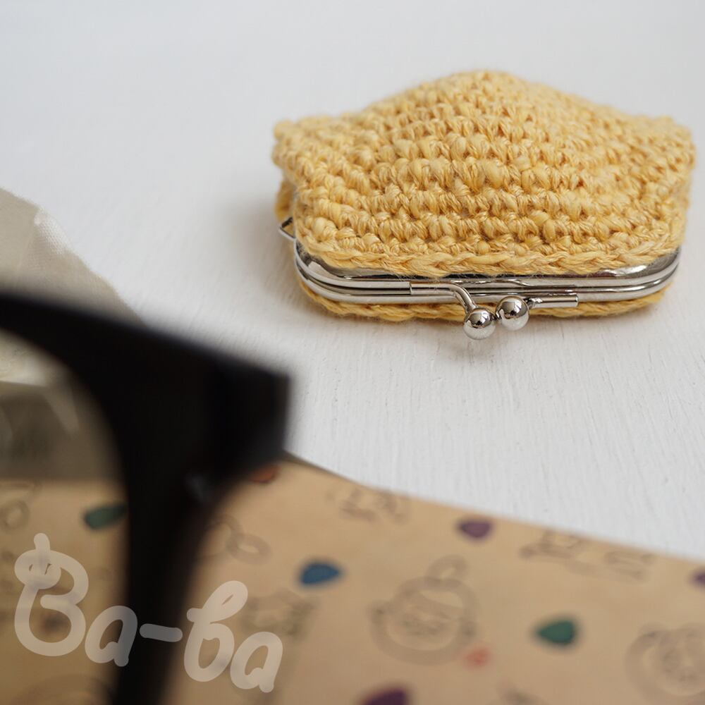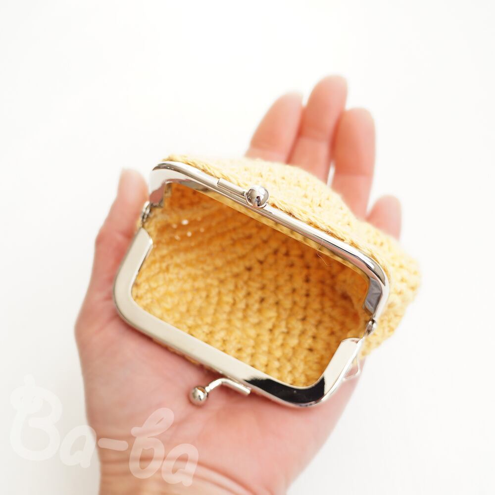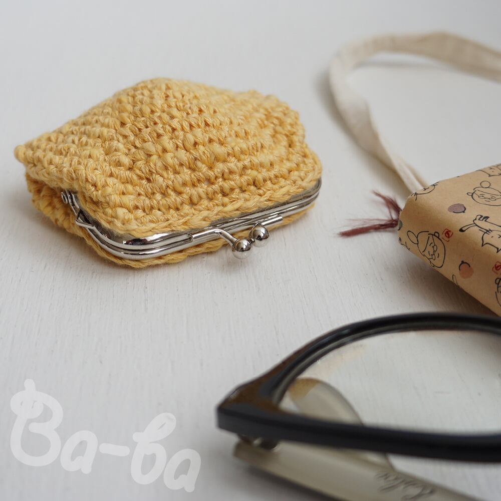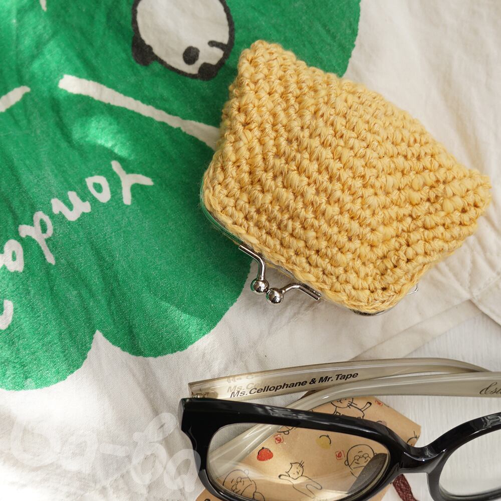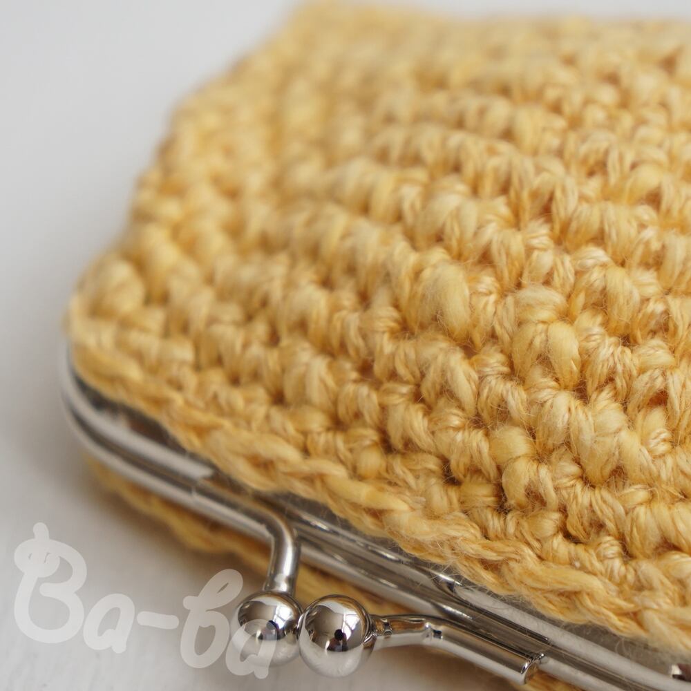 イエローのスラブヤーンをシンプルなスクエアがま口に仕上げました。