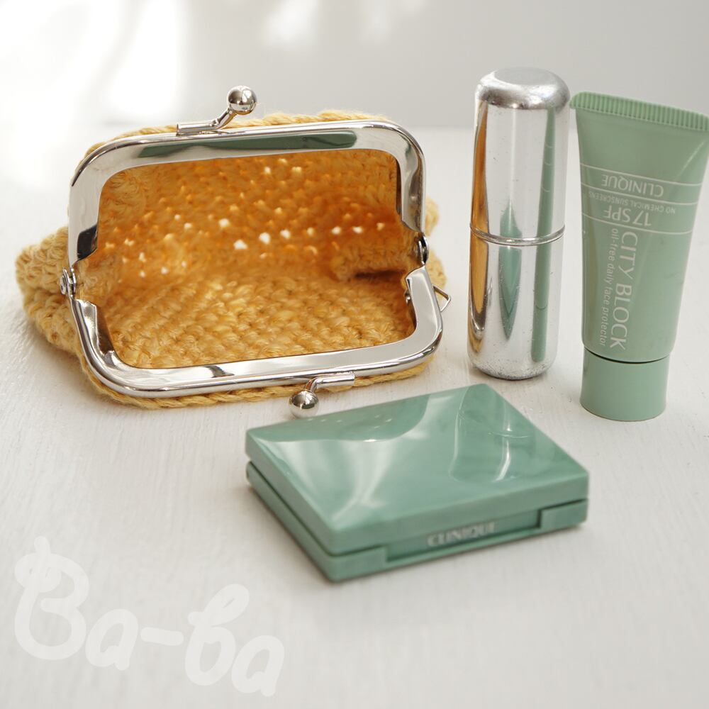 最後まで大事に使いたい、残り糸の編みがま口です。