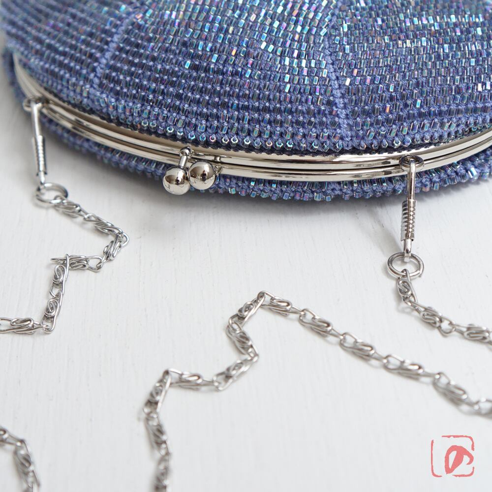 幅15cmくし型の口金を使用、ポーチとして、またオプションのチェーン等でアレンジしてもご使用いただけます。