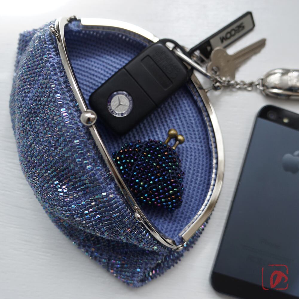 2mmの日本製シードビーズをひとつぶづつ全面に編み込んだ上質ながま口です。