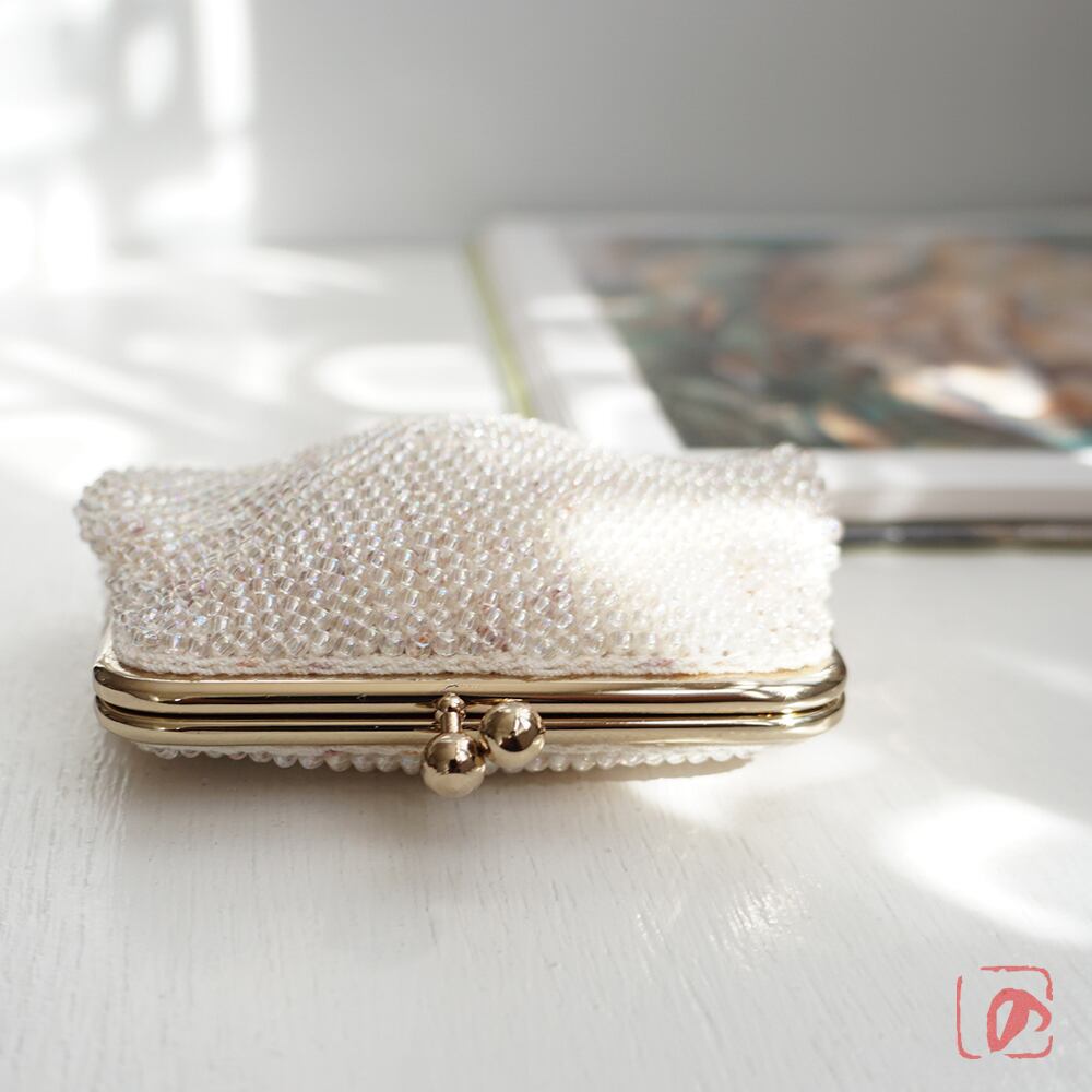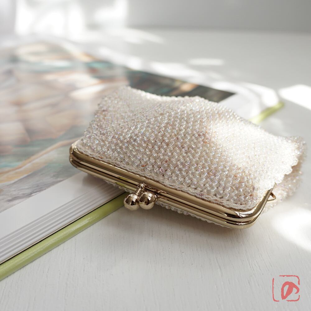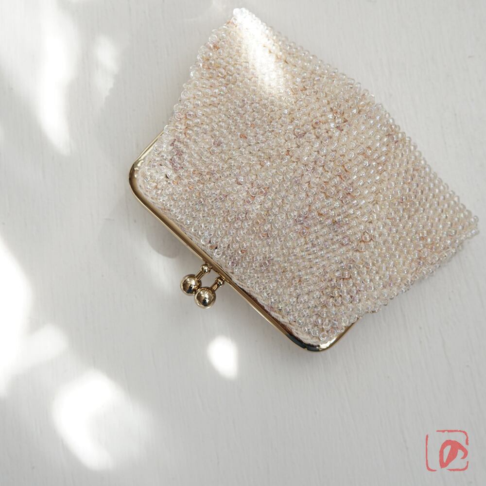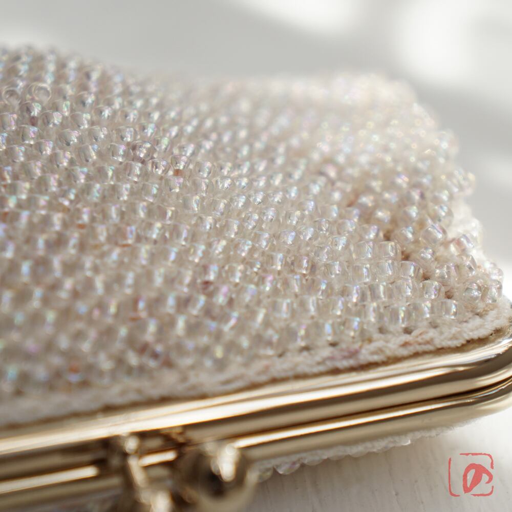 日本製のシードビーズをひとつぶづつ、全面に編み込みました。