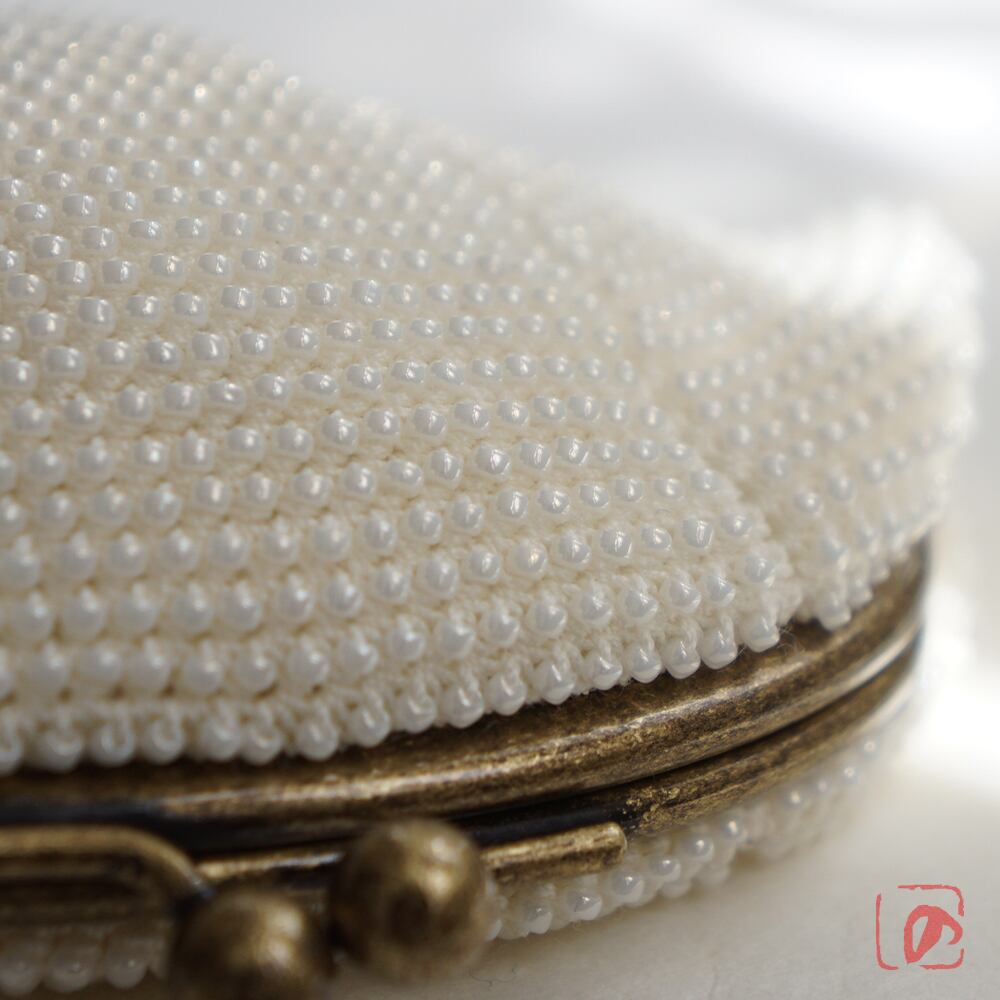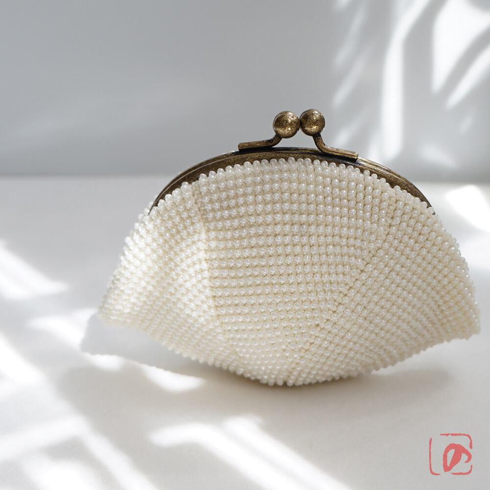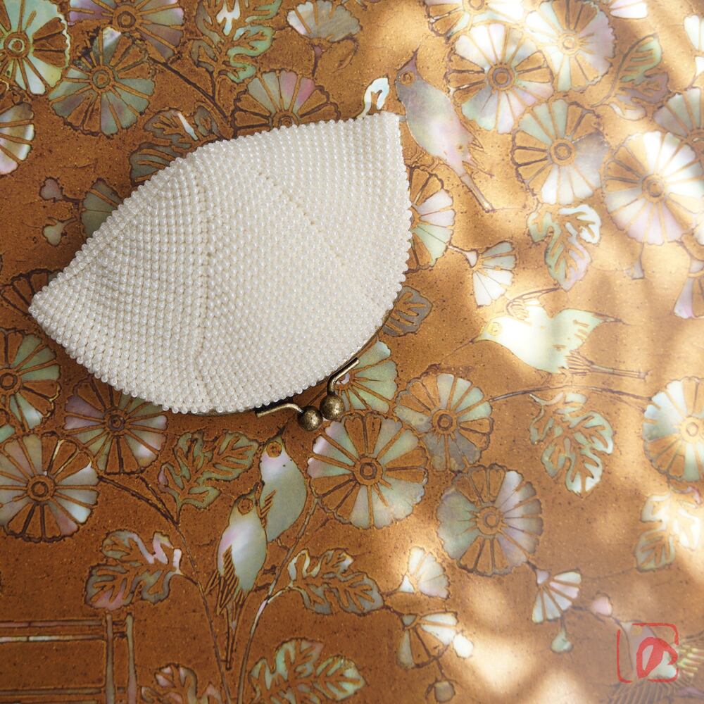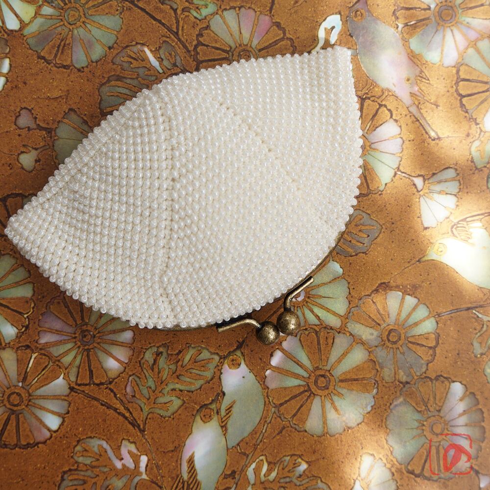 ばあば作 ❖ シードビーズの大きめ格別ながま口(白蝶貝・1891)