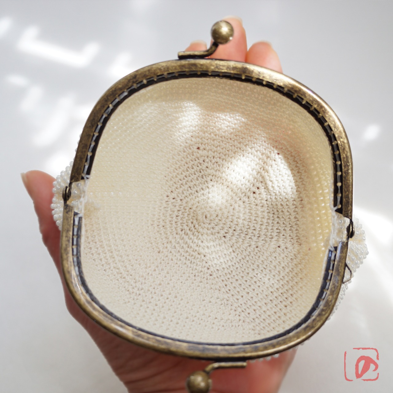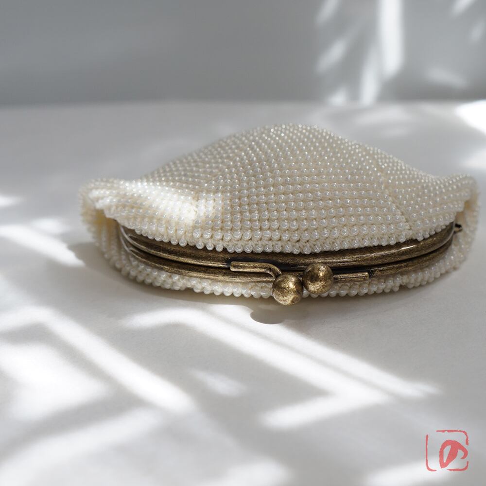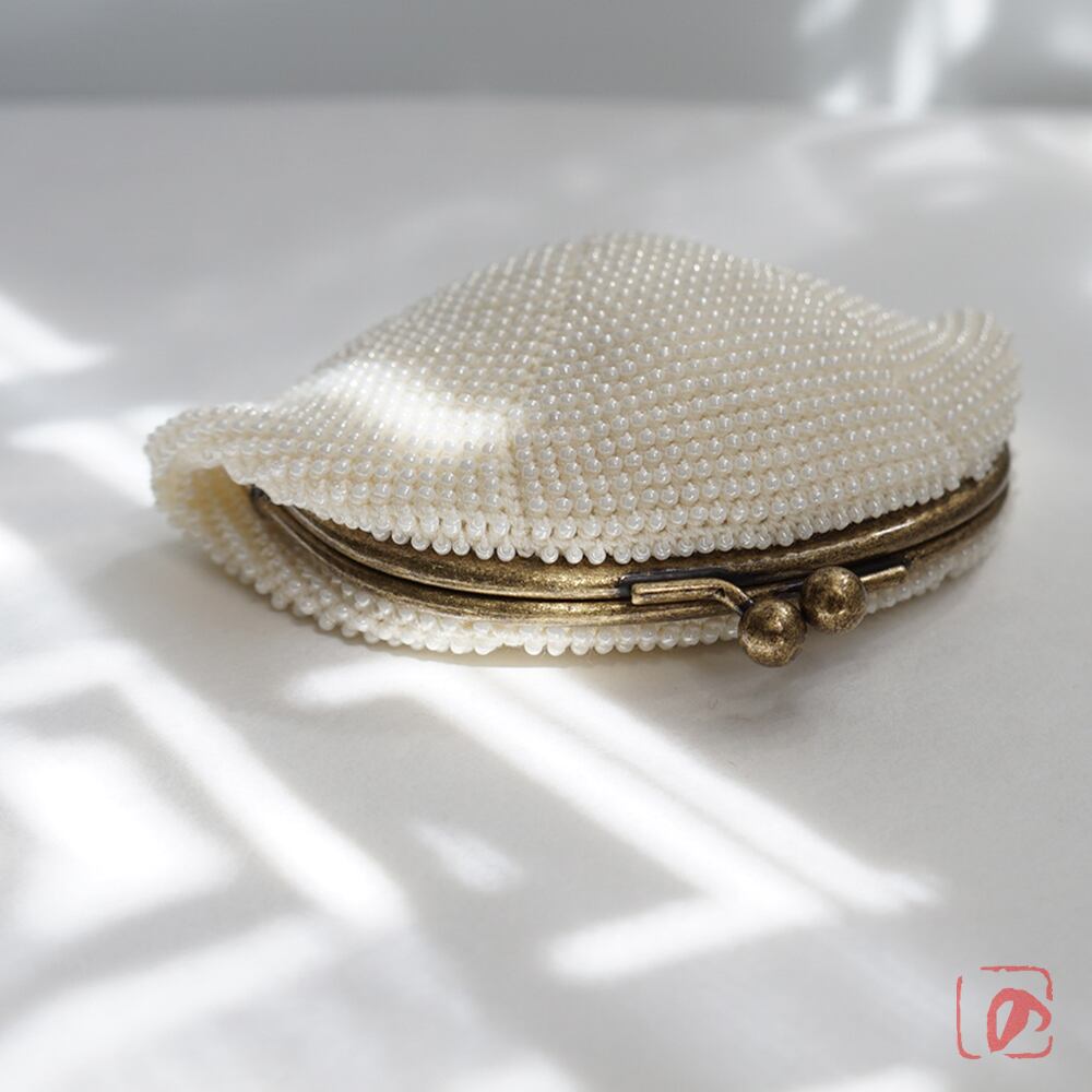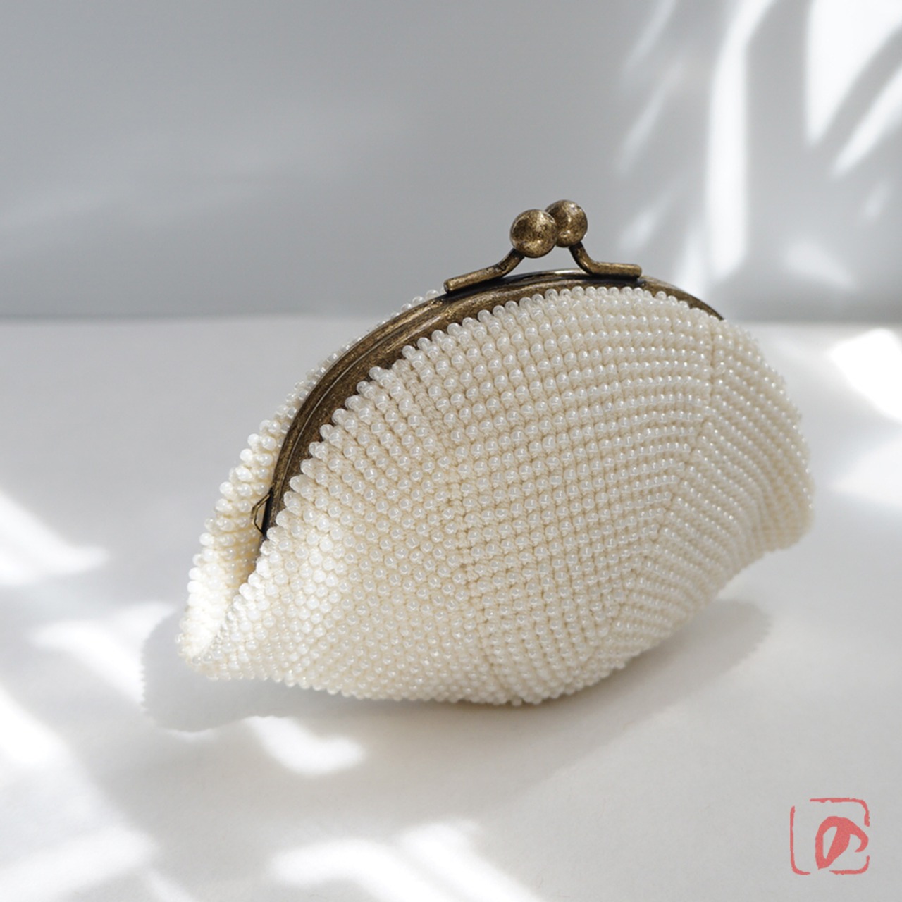 ばあば作 ❖ シードビーズの大きめ格別ながま口(白蝶貝・1891)
