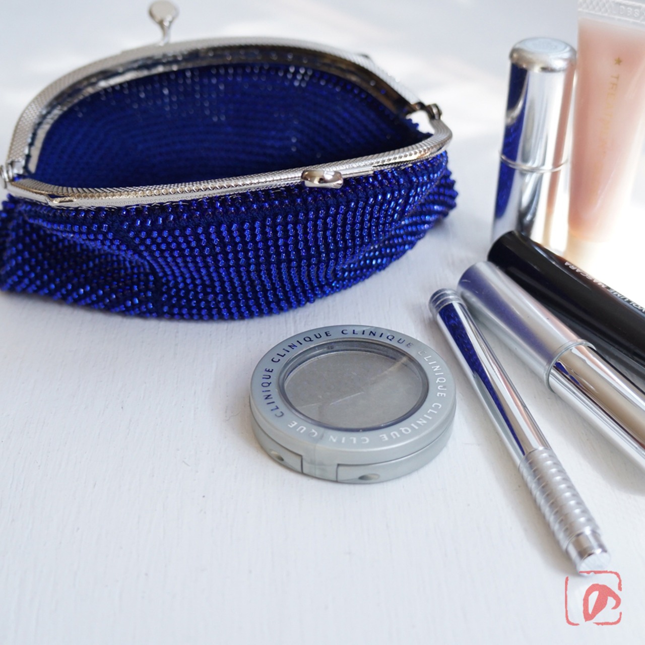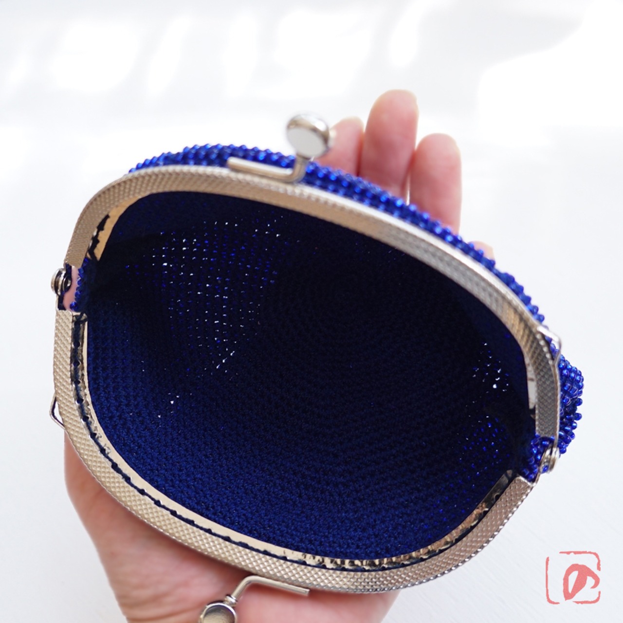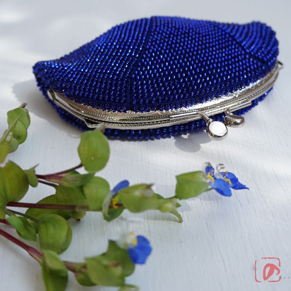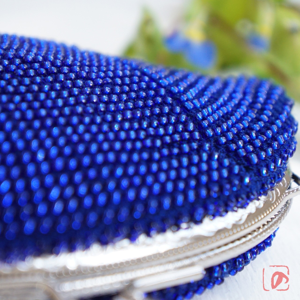 シルバーインサイドのブルーのシードビーズをひとつぶづつ全面に編み込んだ、