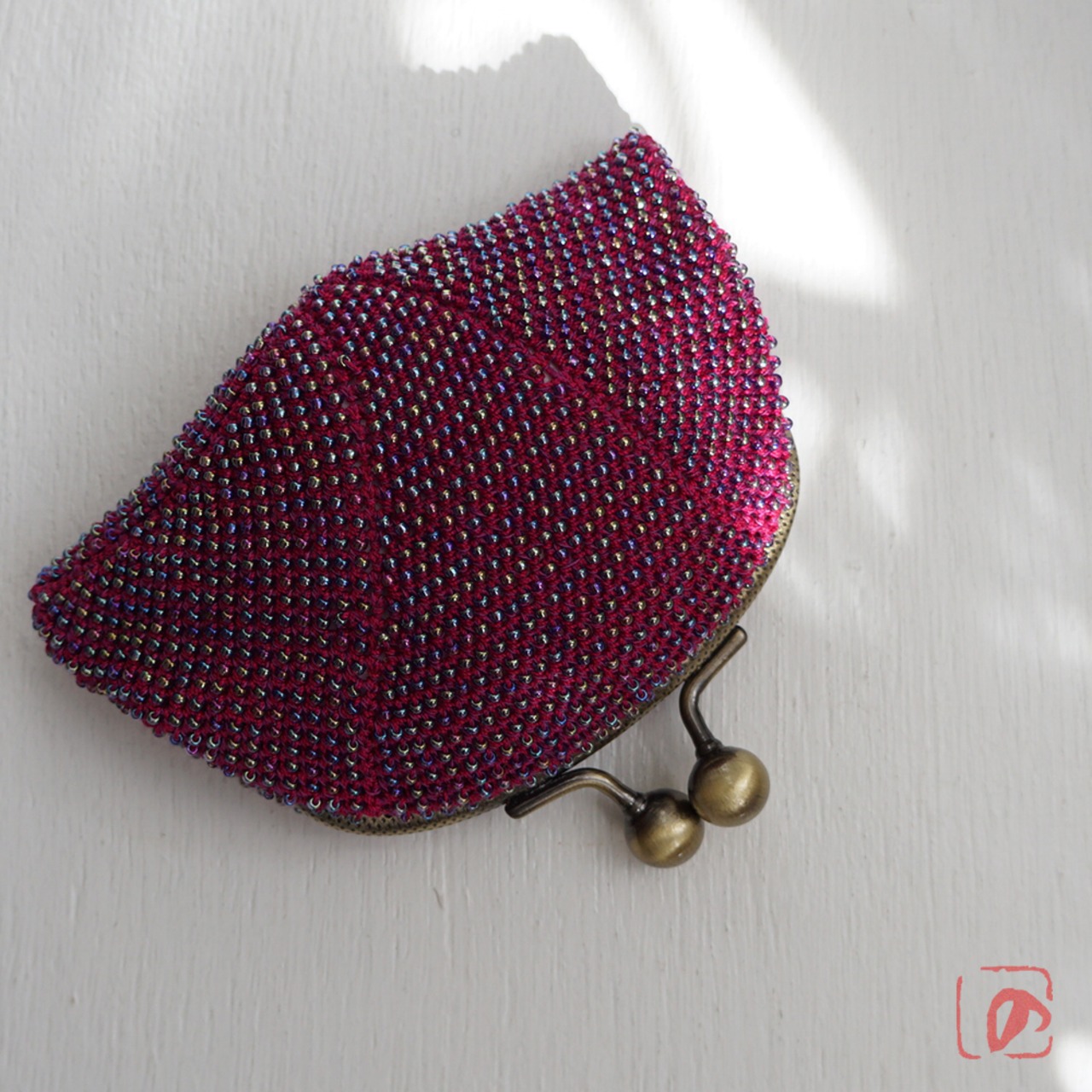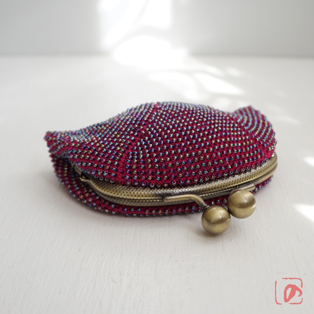 2mmのシードビーズをひとつぶづつ全面に編み込んだ、上質ながま口です。