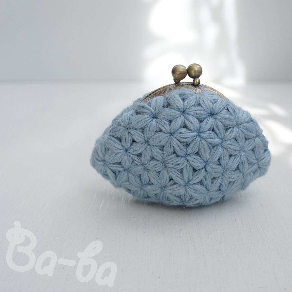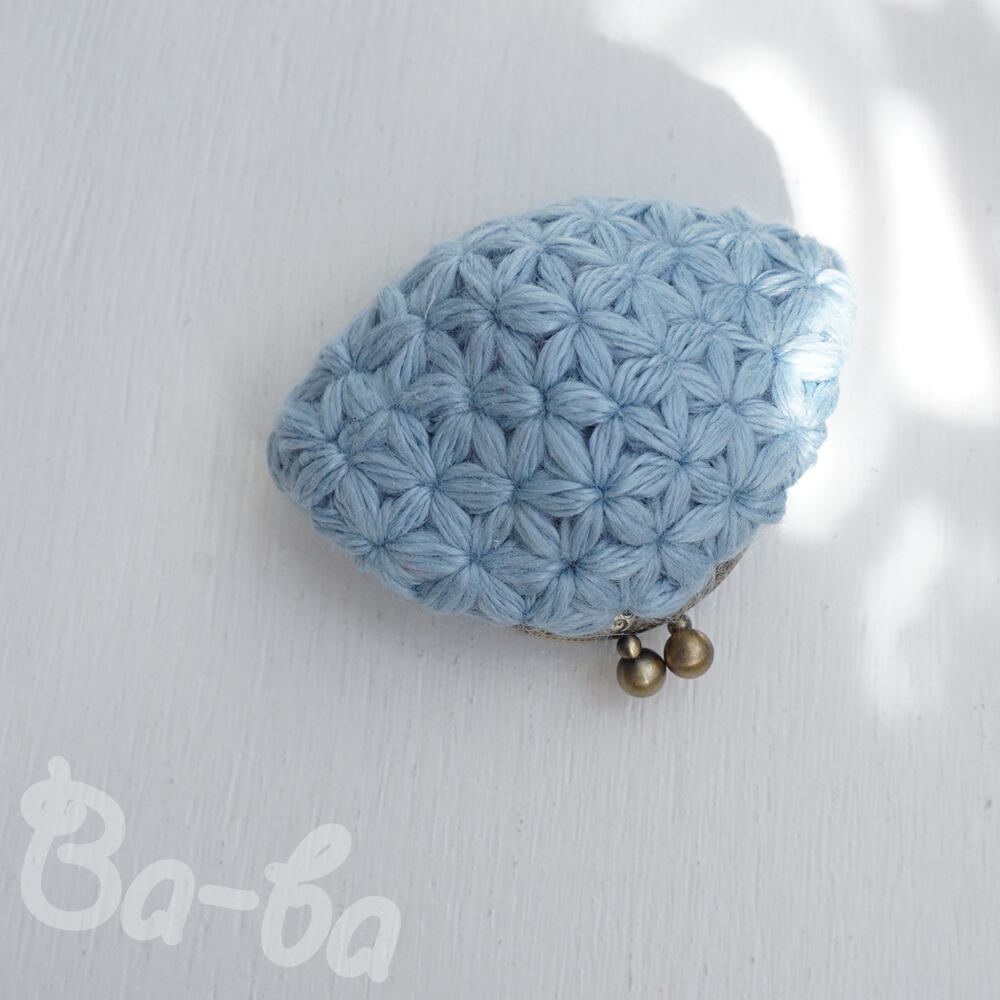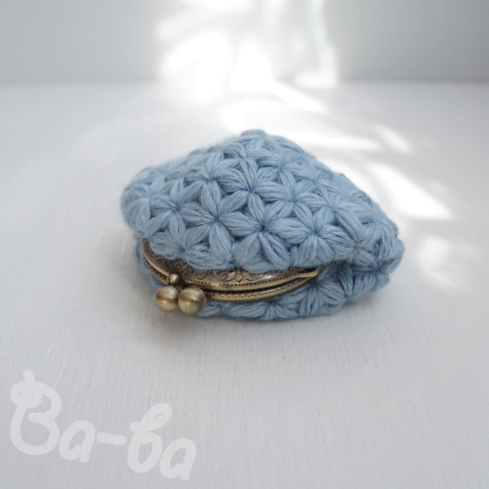 ばあば♪リフ編みふわっとminiがま口(brise d'été・C1737)