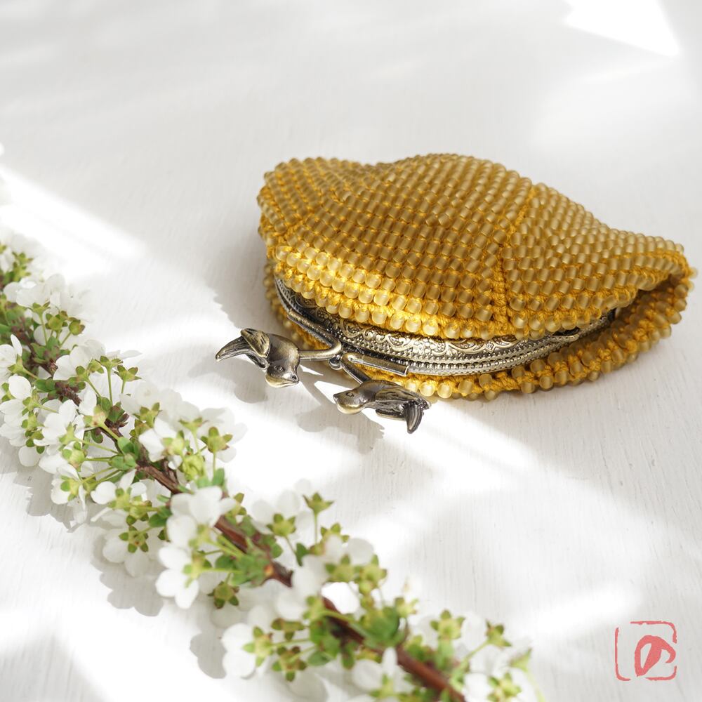 ばあば作☆総ガラスビーズ小鳥のがま口 (genet・2053)